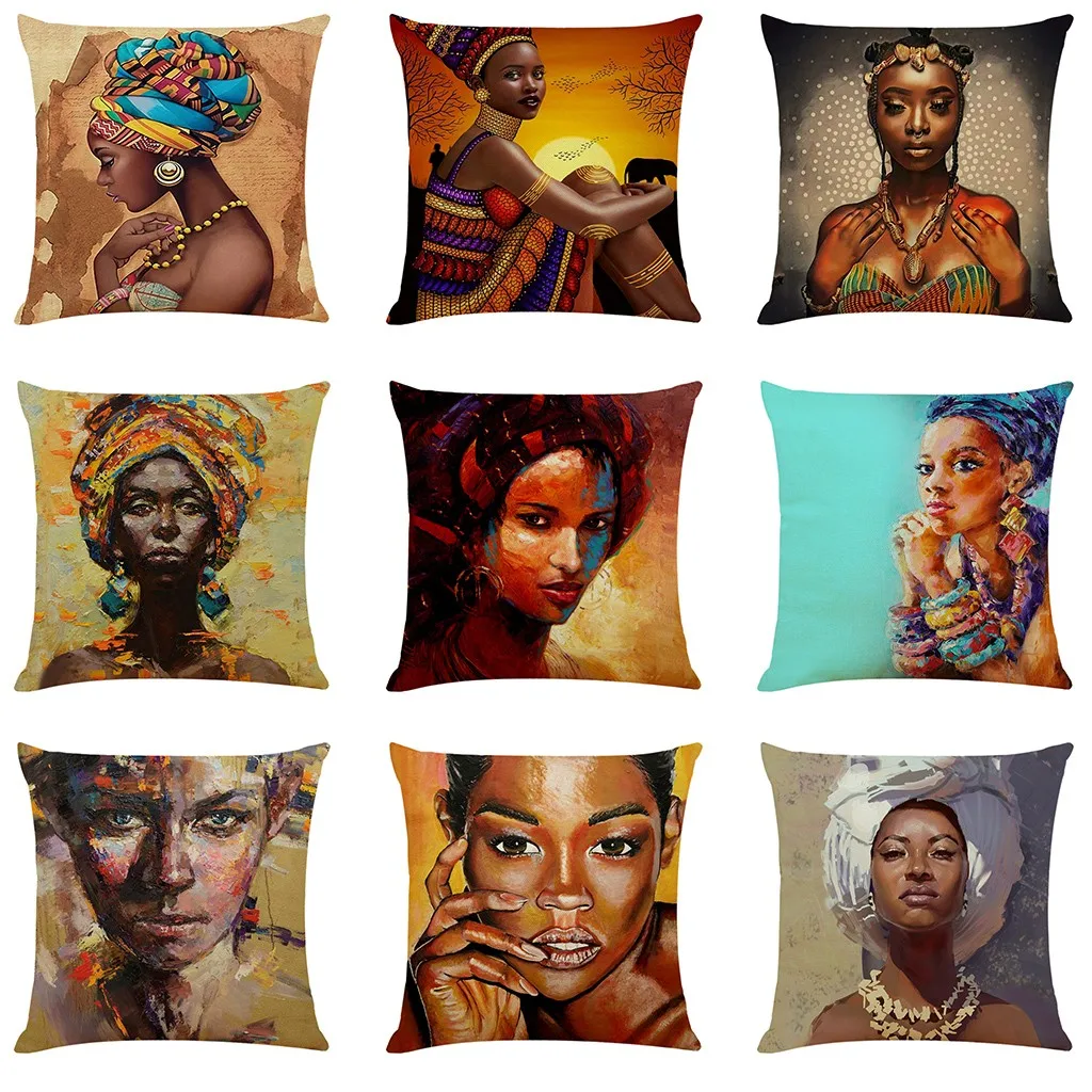 Наволочка креативная африканская Девочка Картина маслом чехол для подушки с принтом забавная квадратная домашняя диванная декоративная наволочка