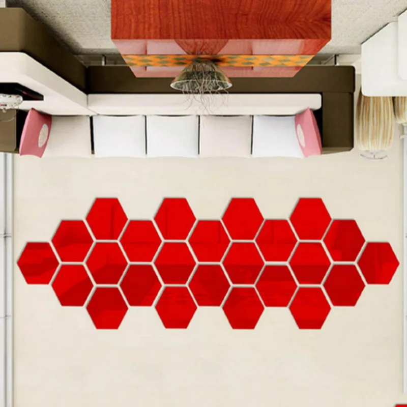 12PCs Hexagon 3D Acrylic Mirror Wall Sticker Removable Wall Crystal Stereo Mirror Sticker Home Decor Mirrored Decorative Sticker
