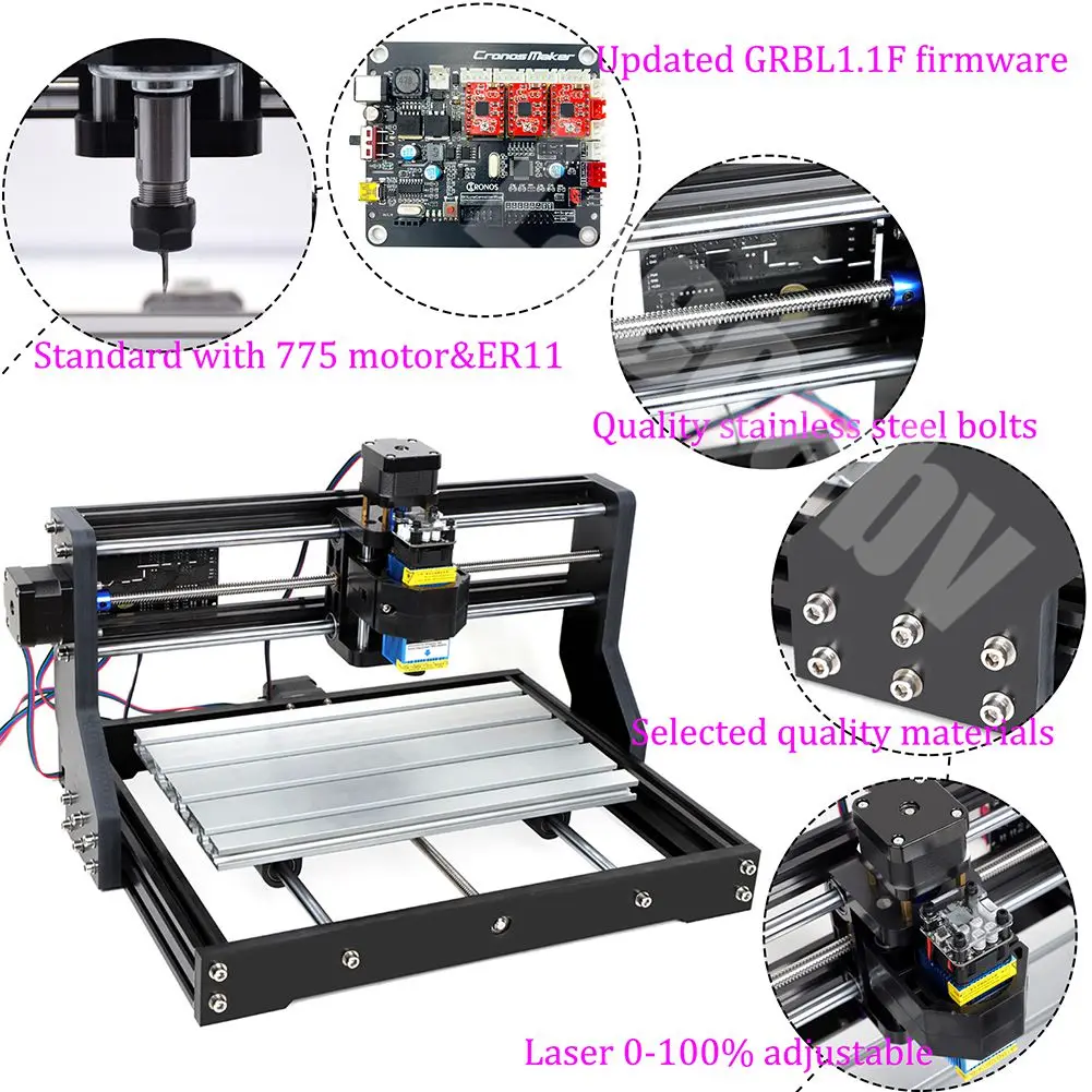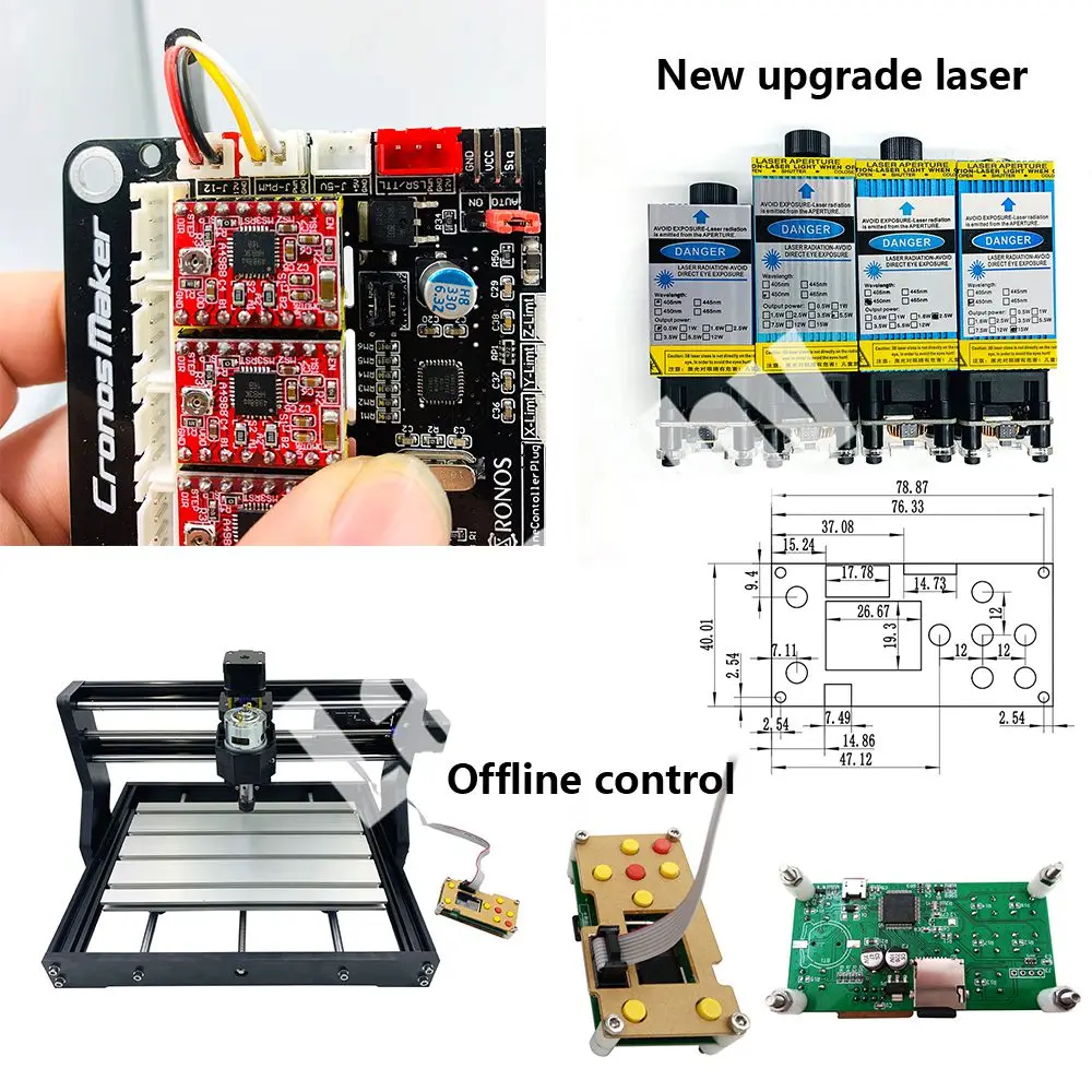 1. 3 оси гравировальный станок по металлу: дерево, Пластик, печатная плата, акрил, фанера и т. д. 2. Лазерная гравировка для: дерева, пластика, кожи, кости, камня, бумаги, раковины и т. Д. 3. У нас есть 10000 мВт Лазерная цвета на выбор: 7, который может выгравировать металлических материалов, таких как нержавеющая сталь и глинозема. 4. Лезвие может быть выгравировано пластиком, деревом, акрилом, ПВХ, печатной платой, деревом или таким же материалом 5. Автономный контроллер поддерживает автономную работу, вам не нужно будет подключаться к компьютеру 6. У нас есть 7 вариантов, вы можете выбрать Автономный контроллер или лазер 7. У нас есть адаптеры для ЕС и США, и я отправлю правильные вилки в соответствии с вашей страной. 8. Если вам нужно больше аксессуаров, пожалуйста, свяжитесь со мной. Посылка включает в себя Стандарт: CNC3018 PRO + ER11 + 4 зажима + 10 бит Добавить Автономный контроллер: CNC3018 PRO + ER11 + 4 зажима + 10 бит + Автономный контроллер Добавить лазер: CNC3018 PRO + ER11 + 4 зажима + 10 бит + очки + лазер (какой из них вы выбираете) Примечание: лаза 10000 МВт может гравировать металлические материалы, такие как нержавеющая сталь О программном обеспечении Мы отправляем товары, включая программное обеспечение и инструкции по монтажу, вы получите компакт-диск, вы также можете сказать мне свой адрес электронной почты, я могу отправить вам программное обеспечение и инструкции по монтажу. О доставке 1, все страны ЕС, мы отправим товар службой доставки DHL, который, как ожидается, для того, чтобы получить свою посылку времени: 5-8 дней 2, все азиатских стран, мы отправим товар службой доставки Fedex, который, как ожидается, для того, чтобы получить свою посылку время: 3-5 дней после получения оплаты 3. Заказы от российских покупателей, мы отправим со склада в России, основной город: 5-10 дней, удаленные районы: 15-30 дней 4. Если Русский склад отсутствует в наличии, пожалуйста, выберите способ доставки в Китае. Гарантийное обслуживание Мы предоставим гарантию на один год, и мы решим все ваши послепродажные проблемы! Мы проверим все товары перед отправкой, и мы гарантируем, что вы получите изделия высокого качества! В течение 15 дней с момента получения товара, если какие-либо детали повреждены, мы вышлем вам новую часть бесплатно! Обновление плата управления 1, улучшенный интерфейс питания: оригинальный пластиковый интерфейс заменен на полностью защищенный металлический интерфейс 2, улучшите Интерфейс USB: оригинальный интерфейс USB-это пайка пластырей, столкновения при транспортировке и неправильное использование, простота в падении, теперь изменен на штекер, очень прочный 3, шпиндель увеличивает изоляцию оптрона, так что плата управления генерирует меньше тепла, регулировка скорости шпинделя более линейная и безопасная. 4, привод шагового двигателя заменен на DRV8255, быстрее, лучшее качество 5, привод шагового двигателя увеличивает Самовосстанавливающийся Предохранитель, когда возникает короткое замыкание или вина, источник питания будет отключен, а светильник индикатора неисправности будет отображаться. 6,12V понижающий увеличения Самовосстанавливающийся Предохранитель, в тех случаях, когда происходит короткое замыкание, мощность может быть отрезать во время, чтобы избежать повреждений. 7, оптимизированный макет, Площадь управления и площадь дисковода, более стабильная работа 8, пластиковы