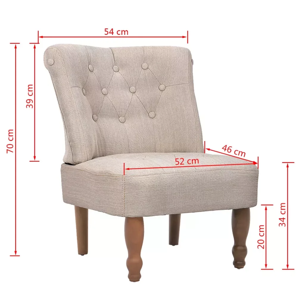 This set of two chairs in French style is elegant and chic, but simple and clean. They assure you a timeless quality that never seems out of date. If you are looking for a French-European touch at home, this French armchair may be your best choice. They are covered with cream white fabric with a linen effect. They have a unique style that can turn any room in your home into something of a masterpiece. Before purchasing this chair, please check its dimensions.