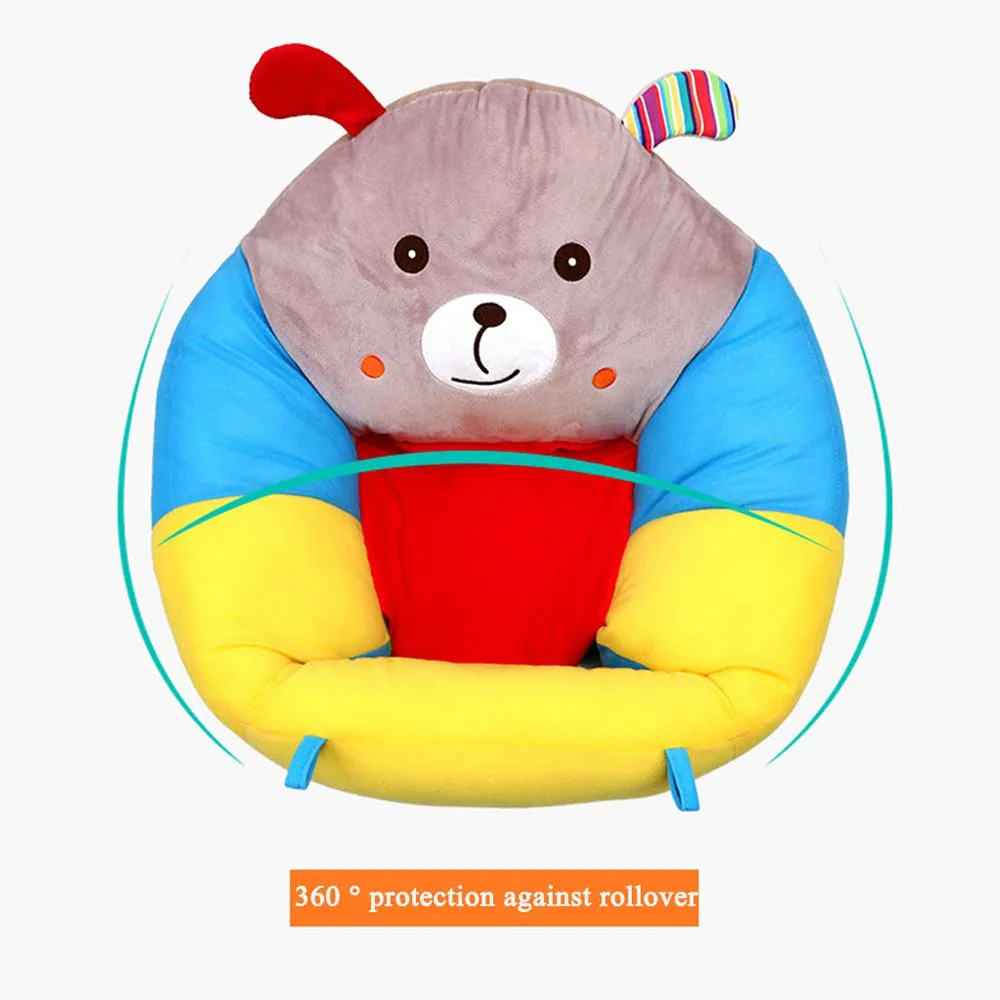 Милый и креативный плюшевый диван с мультяшным животным, ребенок учится сидеть и отдыхать дома.