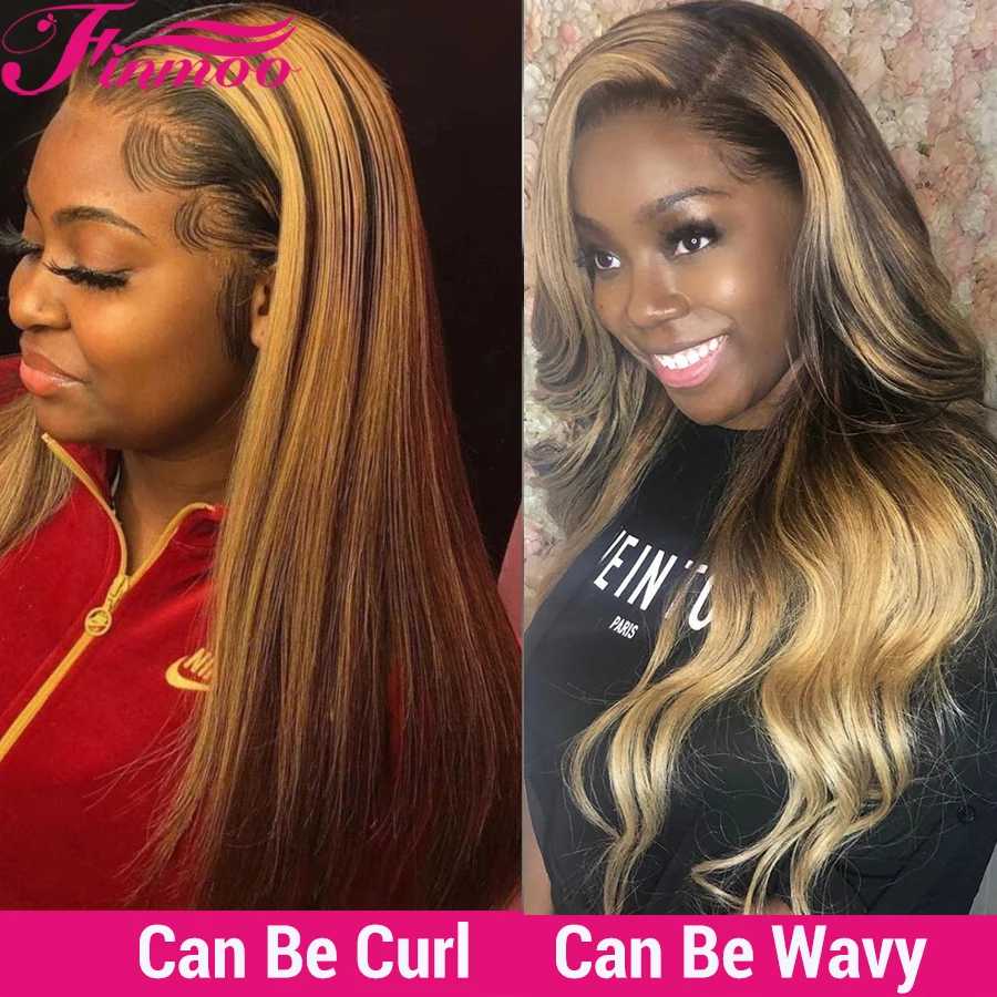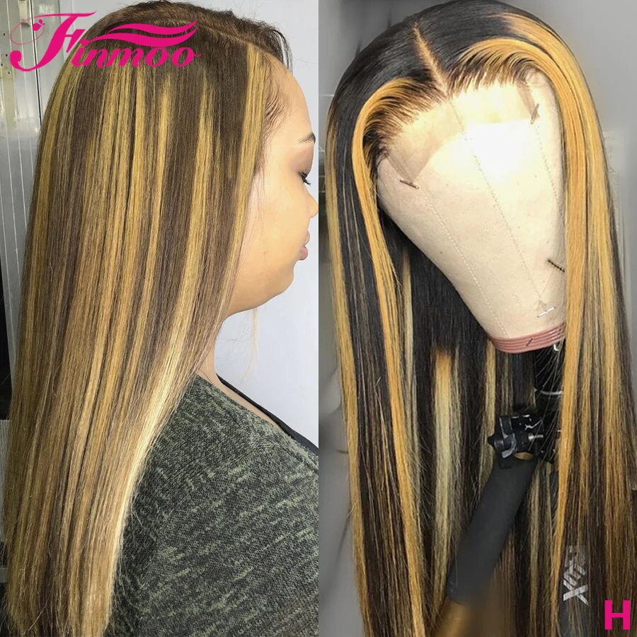 Прямой Мёд блондинка 13x6 Синтетические волосы на кружеве человеческих волос парики бразильских неповреждённых Цветной Выделите парик шнурка предварительно вырезанные для черный Для женщин 150%