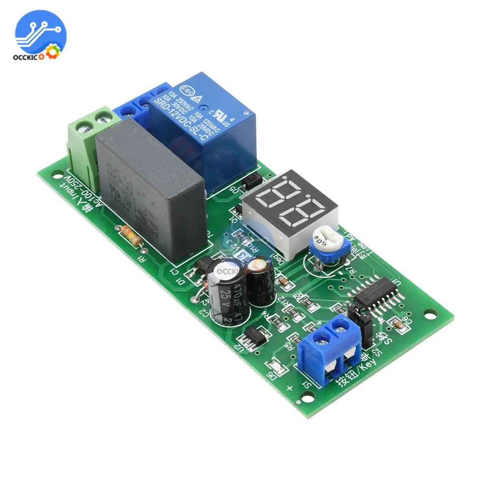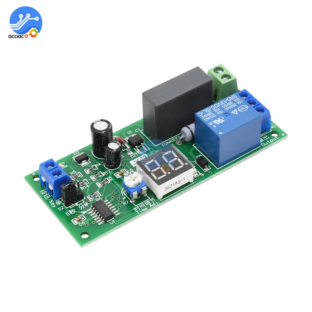 Регулируемый резистор для установки времени, регулируемый диапазон: от 1 до 99, перемычка может выбрать единицы измерения, перемычку за секунды, диапазон настройки 1-99 секунд, перемычку за минуты, диапазон регулировки 1-99 минут.