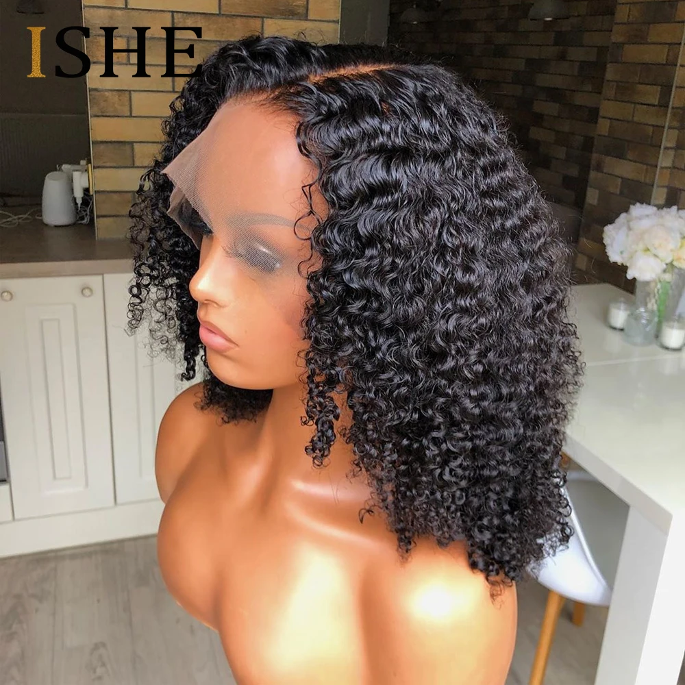Афро кудрявые вьющиеся прозрачные кружевные парики невидимые 13х6 кружевные передние человеческие волосы парики для черных женщин предварительно сорванные Remy волосы 180 ISHE