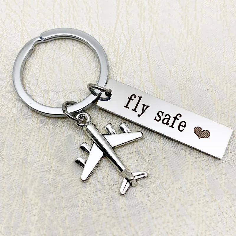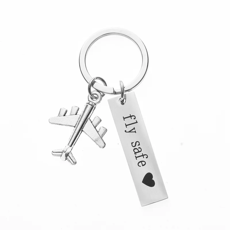 1 шт./лот, выгравированный брелок для ключей «Самолет» из нержавеющей стали с надписью «Fly safe», подвески для влюбленных/пар/семьи/Huaband DIY подарки