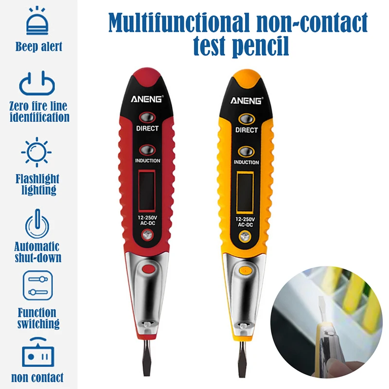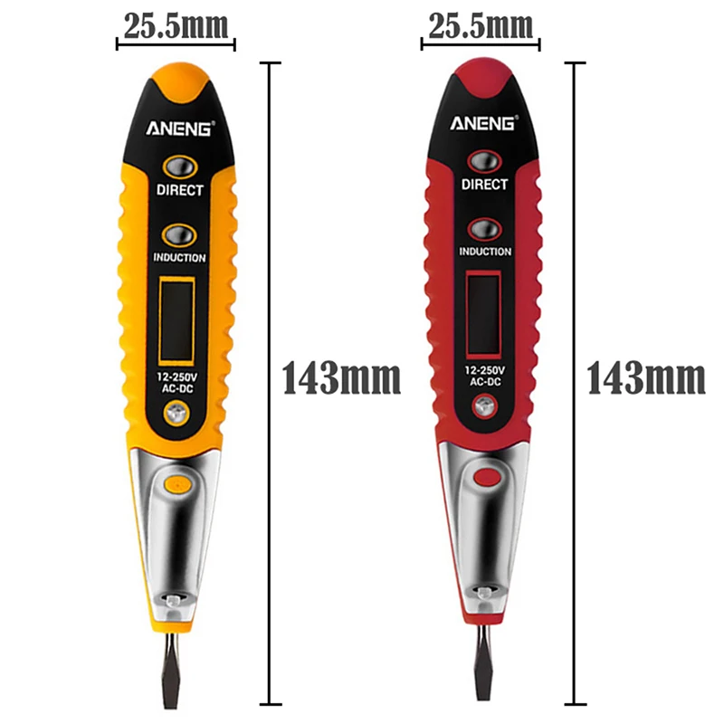 <Многофункциональность: Может использоваться в качестве ручки для проверки напряжения. Подходит для detecting12-220V постоянного и переменного тока и просто обнаружения нулевой линии, фазу и останова переменного тока.