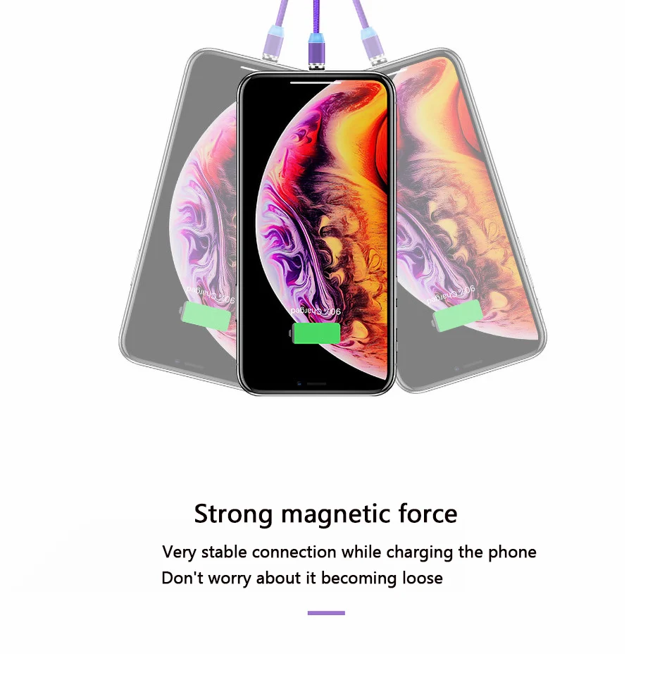 Выход: 5 В/3 А (макс.) Продукт Особенности ● Магнитный дизайн Чтобы вы испытали лучший способ зарядки телефона ● Светодиодный индикатор Встроенный светодиодный индикатор синего цвета загорается при активном кабеле ● Ультрапрочность Металлический порт + нейлоновая оплетка провода, делает продукт прочным и устойчив к запутыванию и запутыванию. ● Простая зарядка Штекер отделен от кабеля. Штекер может оставаться на телефоне, только 1 секунду подключен для зарядки. ● Пылезащитная заглушка для разъема Магнитный разъем может быть пылезащитным штекером и продлить срок службы вашего устройства. Кроме того, он может уменьшить повреждение usb-порта, предотвращая частые затычки и вытягивания. Советы: Этот кабель предназначен только для зарядки, а не для передачи данных. -- Дорогие русские друзья, пожалуйста, напишите ваше полное имя в заказе из-за российской политики, спасибо!