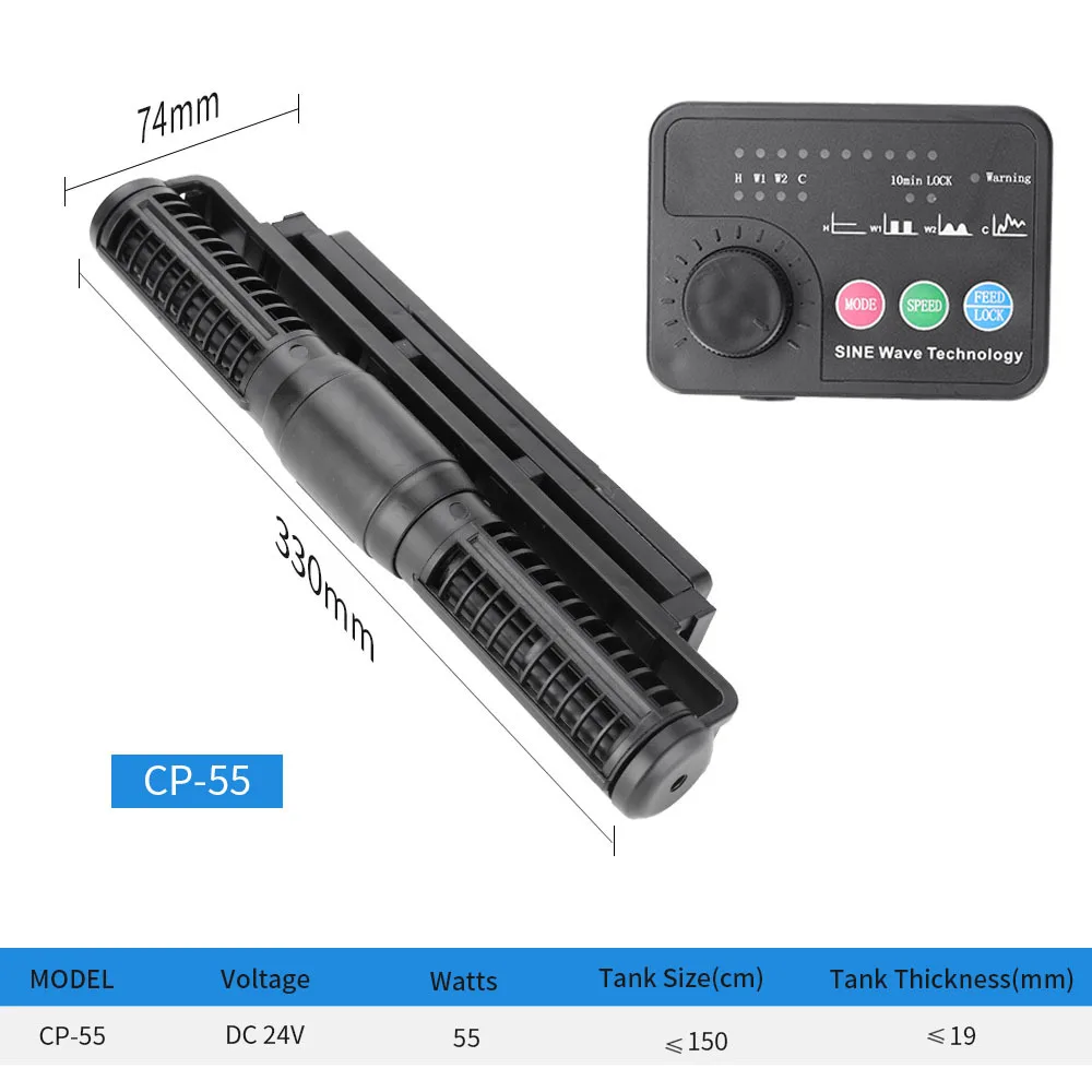 Перемещение воды 360 DEGRESS устраняет мертвые пятна в вашем аквариуме с Jebao / Jecod CP-55 насос поперечного потока. Этот насос позволяет перемещать воду на 360 градусов. Легко скрывать этот компактный насос крепится к аквариумной стене с магнитами и выступает всего около 3 дюймов в резервуар, что делает его очень легко спрятать. Хорошая волновая функция Насос включает в себя контроллер, который имеет несколько волновых функций. Насосы CP могут опускаться до 1998 ГПХ или до 100% мощности, 6864 ГПХ. Три модели HOICE CP25: подходит для аквариума 60-90 см; CP40: подходит для аквариума 100-120 см; CP55: подходит для аквариума 150-180 см; Новый более сильный магнит база до 3/4 "стекло; Супер тихий. Резиновая Магнитная основа уменьшает шум