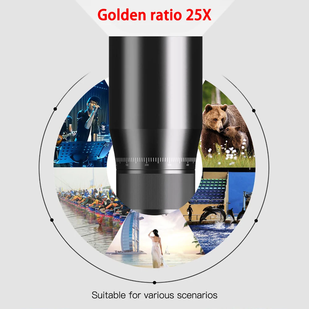 4. Практичный для использования: чтобы сделать мобильную фотографию более профессиональной, объектив очень важен. Золотое увеличение 25x. Съемки звезд, съемки игр, рыбалки, животных и портретов.
