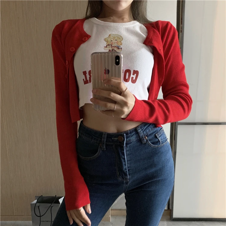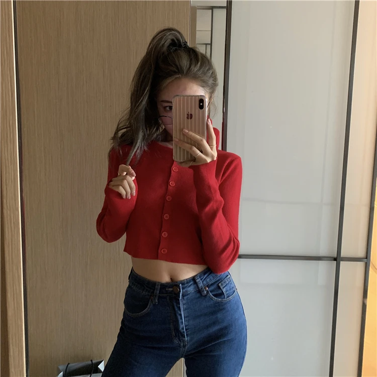 LUZUZI, осень 2021, вязаный кардиган, женский, на пуговицах, корейский свитер, Укороченный кардиган, Kawaii, укороченный свитер, вязаный Топ, уличная одежда