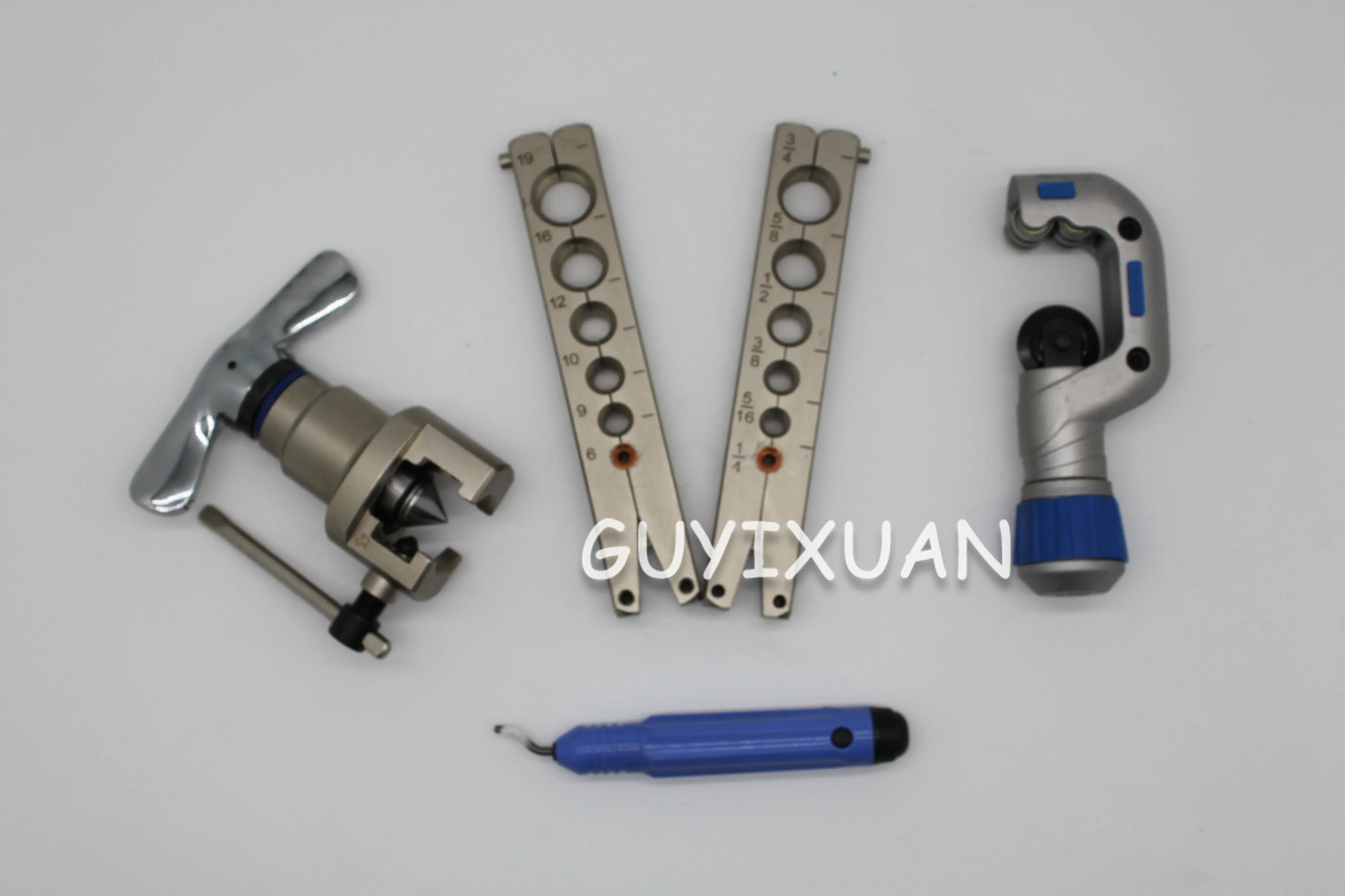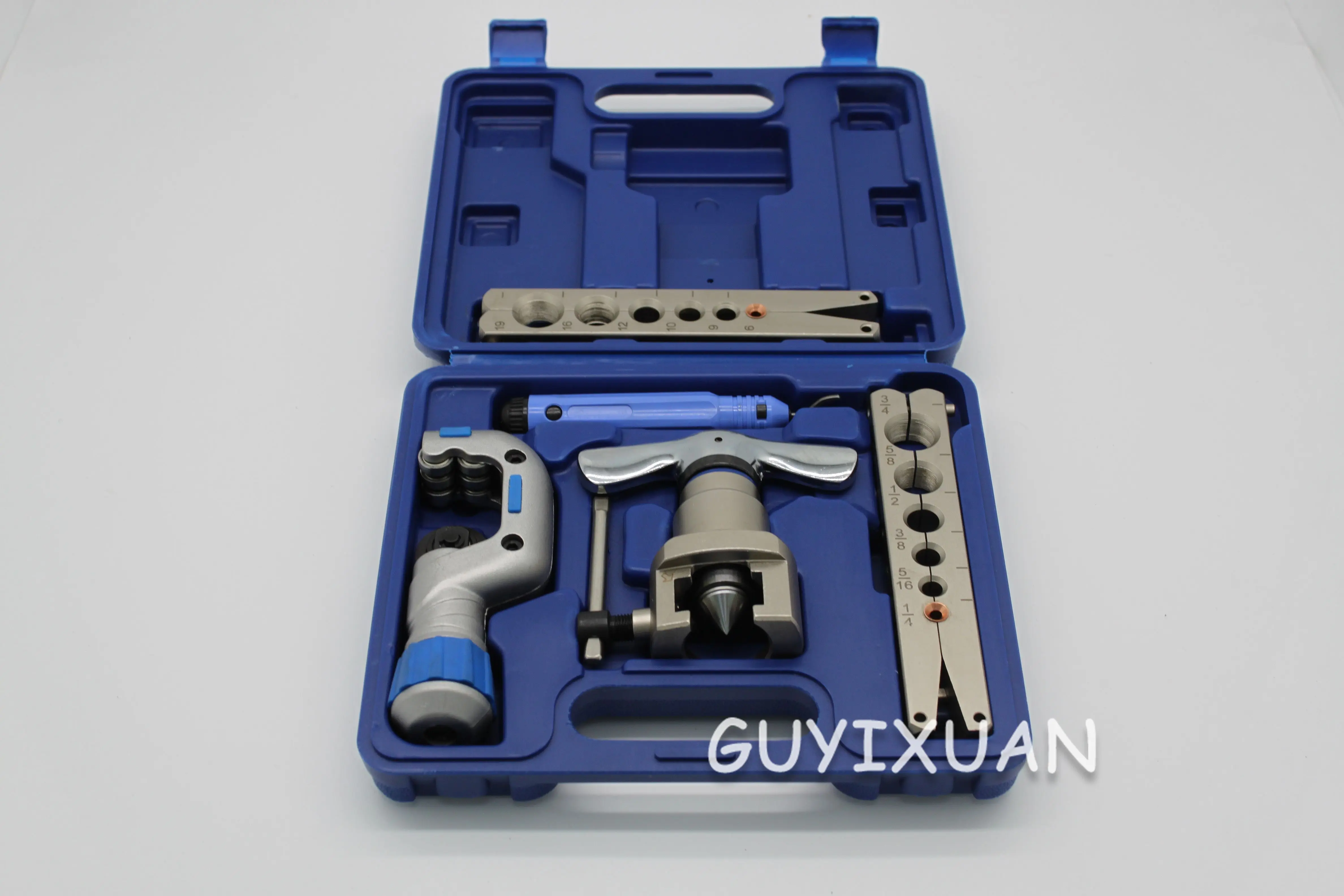 Модель: CT-809AM Материал: высокоскоростная стальная головка из алюминиевого сплава Поддержка ручного расширения: 3-9 мм или 5-19 мм Инструкции по упаковке: пластиковая коробка Расширитель в основном используется для изготовления колокольчика медной трубы. Форма сопла колокольчика используется для резьбового соединения и не подходит для соединения, когда интерфейс вставлен, для обеспечения герметизации и прочности детали интерфейса. Цилиндрический порт используется, когда одна трубка вставляется в другую трубу при подключении двух медных трубок. Как использовать расширитель: При расширении трубы сначала сровняйте расклешенный конец медной трубы с помощью Расточного инструмента, затем поместите медную трубу в отверстие зажима соответствующего диаметра трубы, затяните крепежную гайку на зажиме и плотно закрепите медную трубу. При расширении расклешенного порта сопло должно быть выше, чем поверхность расширителя, и его высота примерно такая же, как скоса фаски отверстия. Затем Расширенная трубка прикручивается к винту и фиксируется вместе с кронштейном с обеих сторон зажима. После размещения конуса расширения к соплу винт равномерно и медленно затягивается, а конус также вставляется в сопло. В это время следует отметить, что не применяйте чрезмерную силу при выборе винта, чтобы избежать растрескивания медной трубки. Как правило, после каждых 3/4 кругов поворот 1/4 поворачивается вспять, и это повторяется до тех пор, пока он не будет расширен. Конечный клеш колокол круглый, гладкий и без трещин. При расширении цилиндрического отверстия хомут должен надежно зажимать медную трубку, в противном случае медная трубка будет легко перемещаться назад и вытесняться при сжигании, что приведет к недостаточной глубине цилиндрического отверстия. Высота поверхности сопла должна быть немного больше, чем глубина головки. Серия стояков для расширителя была создана для различных глубин и зазоров различных диаметров труб. Как правило, длина диаметра трубы составляет менее 10 мм, длина трубы составляет около 6,10 мм, а зазор-0,06 ~ 0,10 мм. При расширении трубы необходимо только зафиксировать приподнятую головку, соответствующую диаметру трубы на винте, а затем зафиксировать раму банта и медленно ввинтить ее в винт. Метод конкретной операции такой же, как при расширении вспышки.Реальные товары