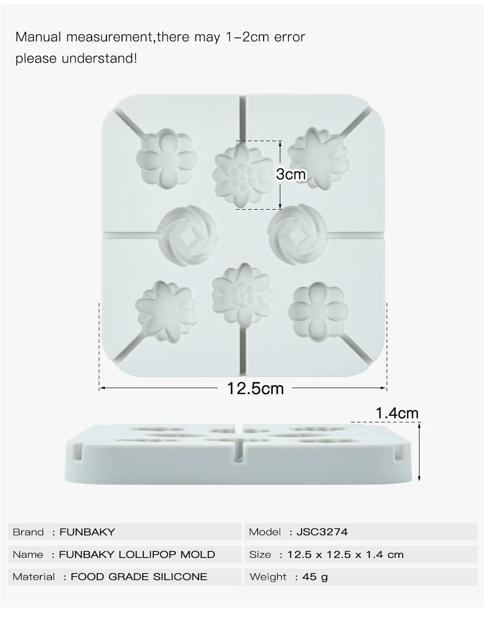 Описание: Материал: безопасный для пищевых продуктов силикон Цвет: белый Этот пресс-форм-это очень универсальный пресс-формы, подходит для шоколада, так и для выпечки. Эта силиконовая форма может выдерживать температурные диапазоны от-60 °C (-76 °F) до + 230 °C (+ 446 °F). Потрясающий эффект при резке гарантирован! Обратите внимание: Пожалуйста, учитывайте погрешность в 1-3 см из-за ручного измерения и убедитесь, что вы не возражаете перед заказом. Пожалуйста, поймите, что цвета могут иметь хроматическую аберрацию, так как разное размещение фотографий.