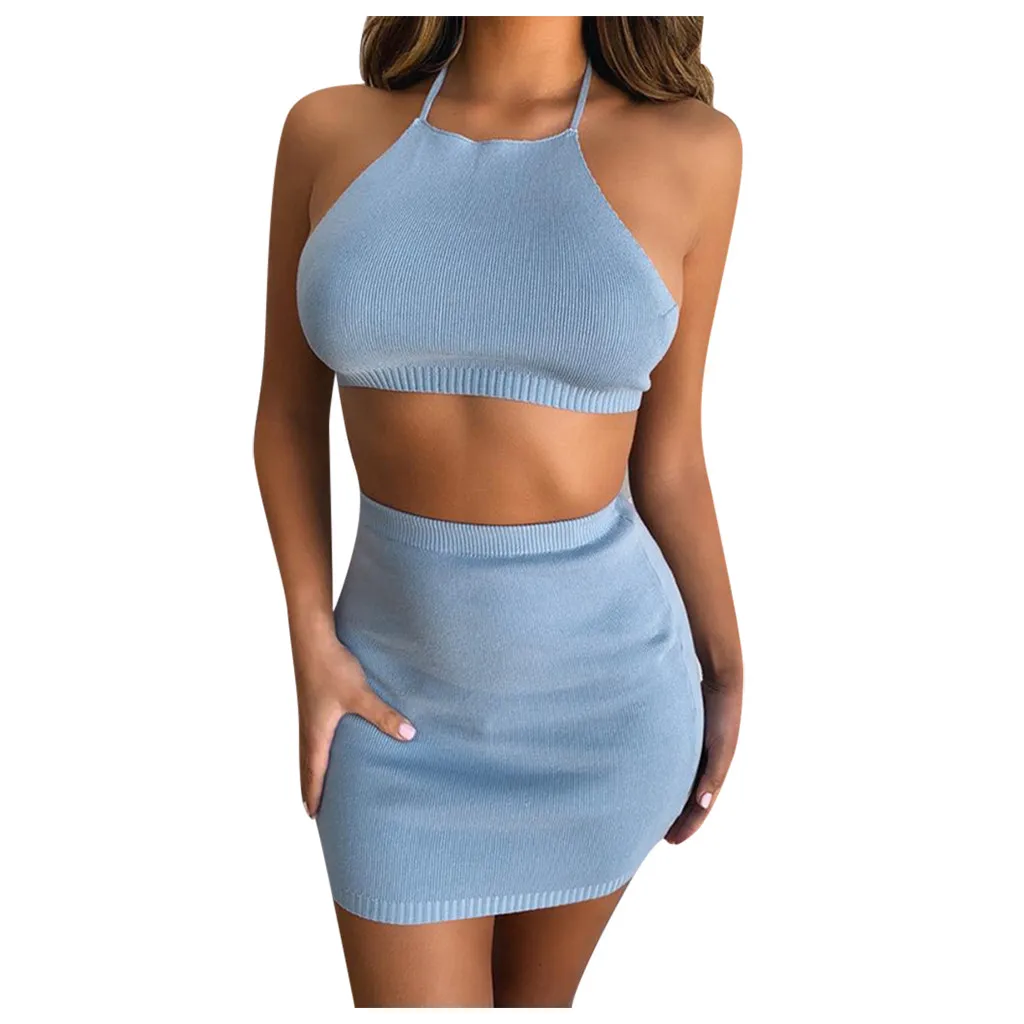 Женское трикотажное платье, облегающий однобортный мини-топ и юбка, летний комплект для девочек