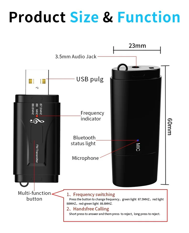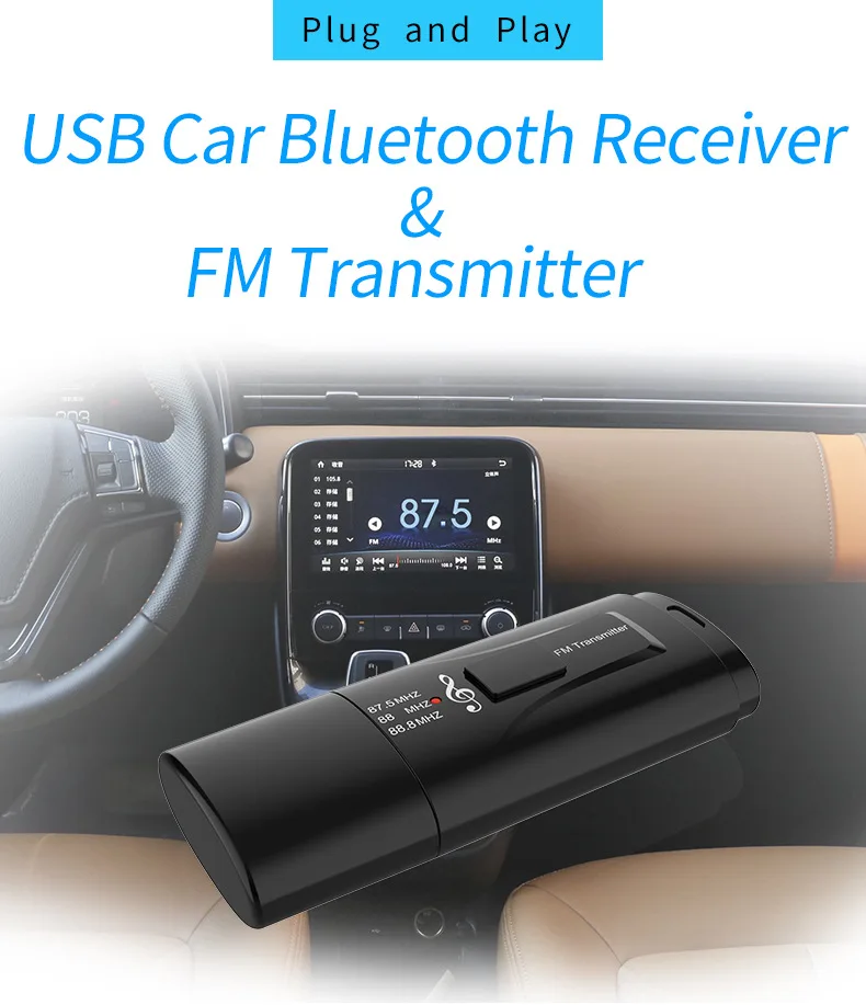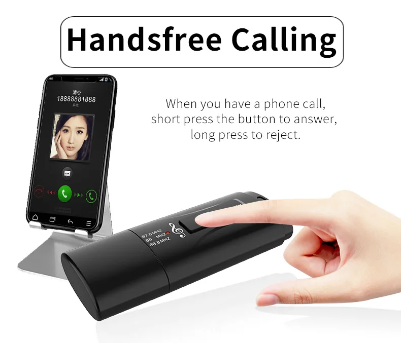 3) Adjust the car radio frequency the same as the device. When the device has interference or the noise is large, you can fine tune the radio frequency by 0.1 MHZ or minus 0.1 MHZ, or change to another frequency.