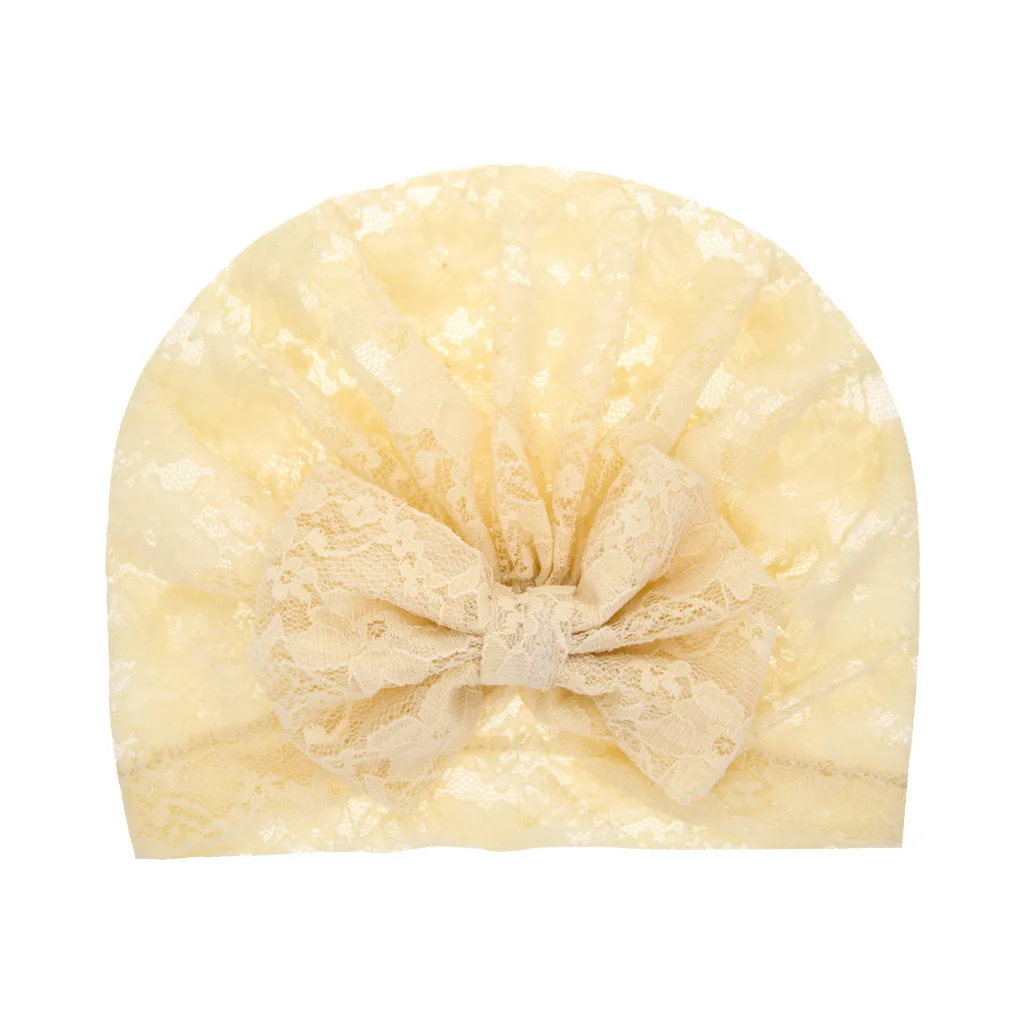 Шапка головной убор с кружевным бантом для новорожденных мальчиков и девочек