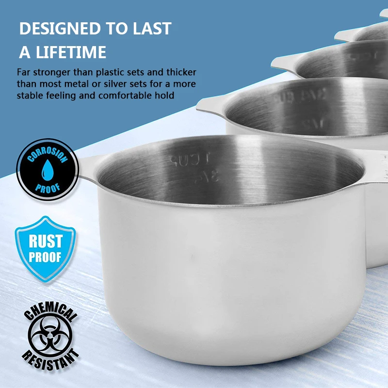Материал: пищевая нержавеющая сталь 304 (мерная чашка) пищевая нержавеющая сталь 430 (мерная ложка)