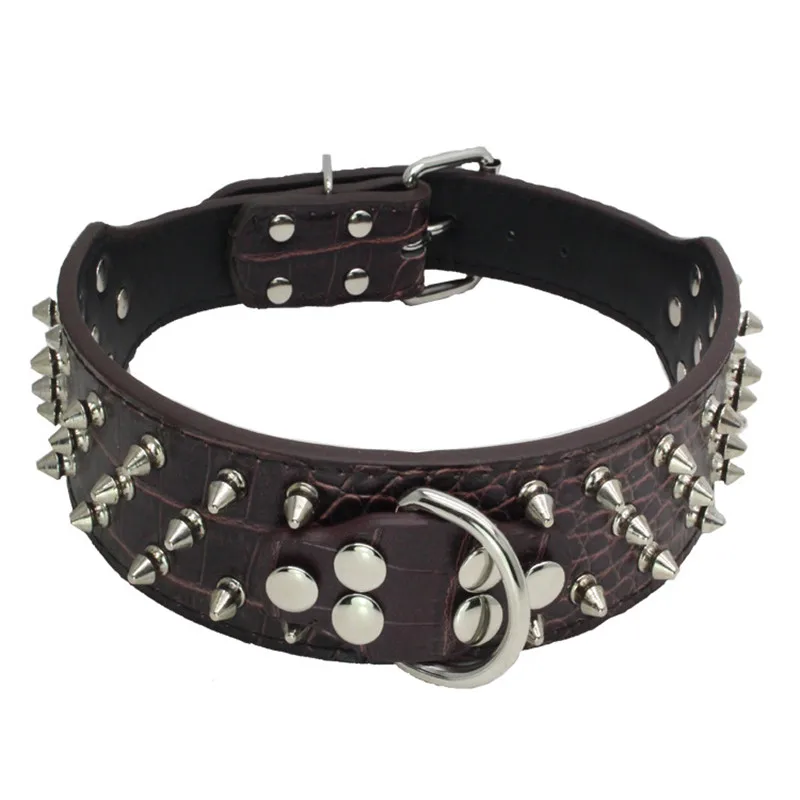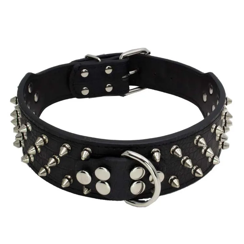 2 дюйма широкий из искусственной кожи ошейник для собаки шипованные заклепки Шипованные ошейники для собак для маленьких средних для крупных собак кошек Тедди Чихуахуа Французский бульдог DOGGYZSTYLE
