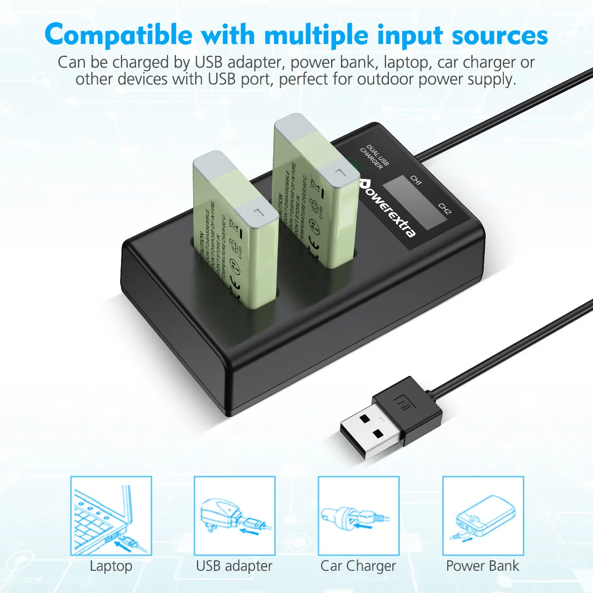 6. Зарядное устройство предназначено только для зарядки аккумулятора. Он не работает как адаптер переменного тока для вашей цифровой камеры или видеокамеры