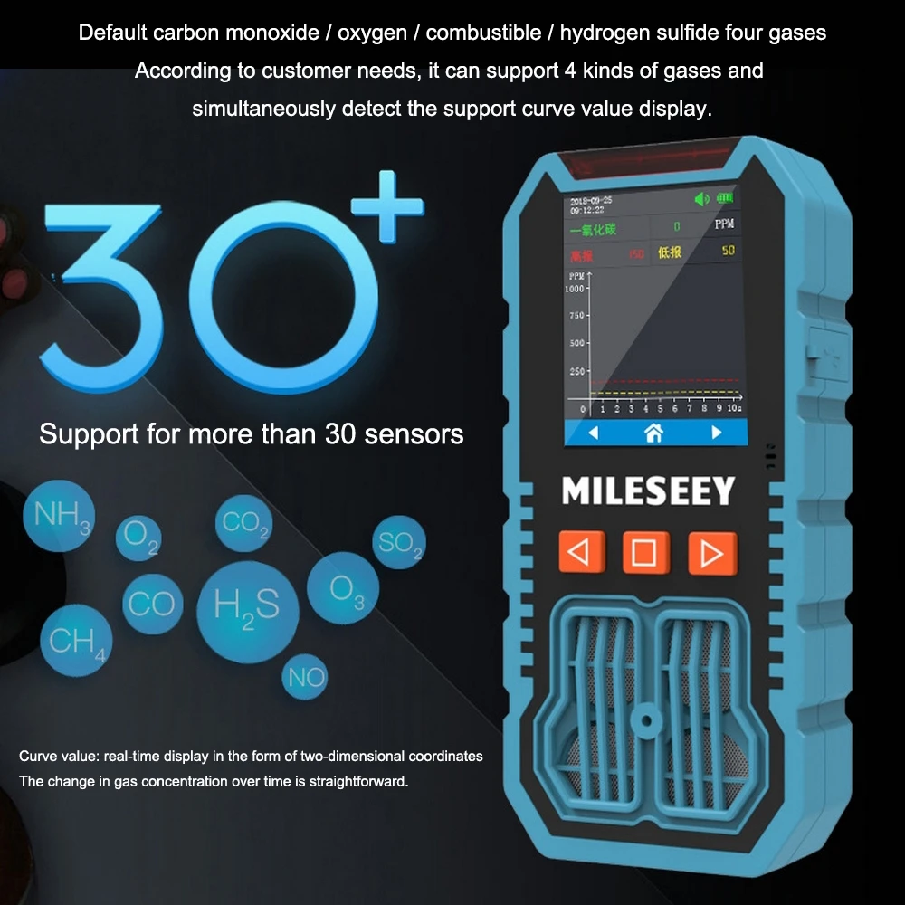 Продукт поддерживает четыре типа обнаружения газа: легковоспламеняющийся газ (EX) кислород (O2) сероводород (H2S) окись углерода (CO)
