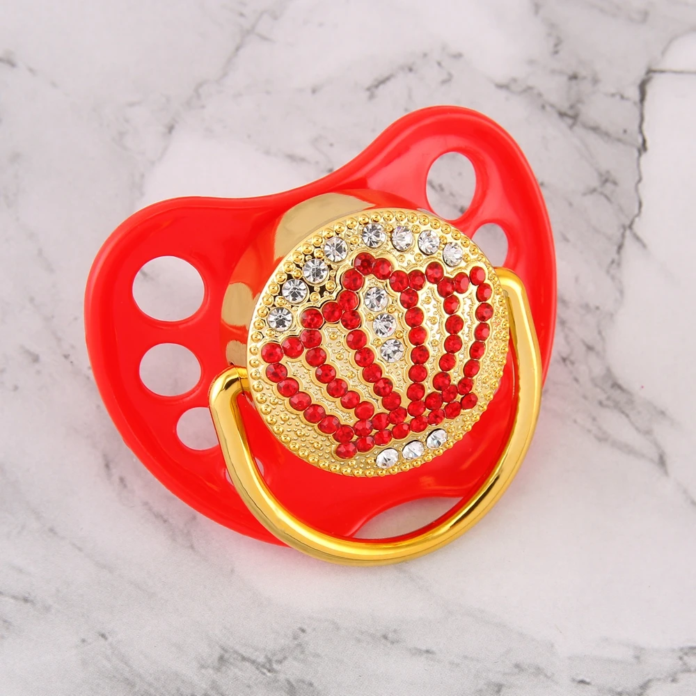 Bling синий и красный цвета Корона детская пустышка на цепочке с прищепкой с Стразы детские соски манекен Cocka удобные дозаторы Chupeta подарка на празднование в честь будущего рождения ребенка