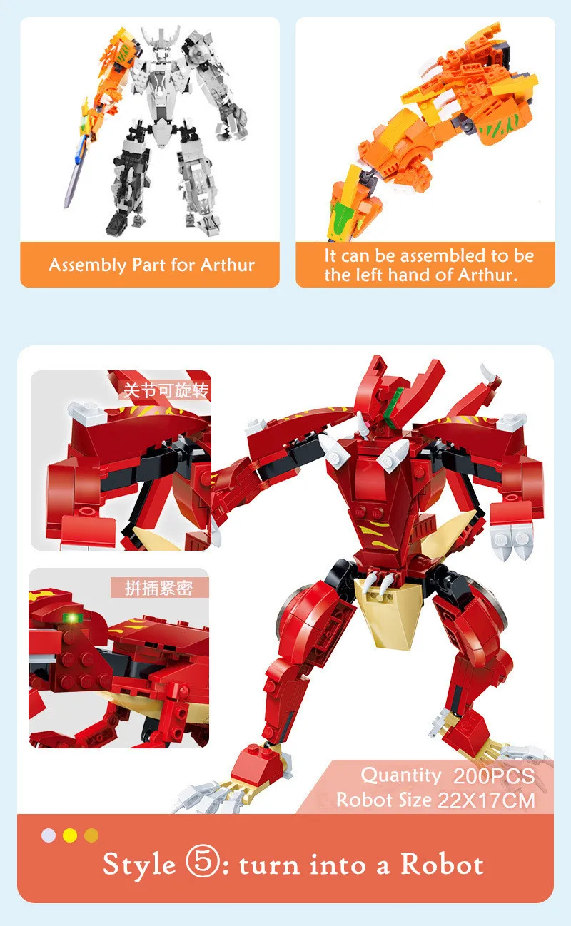 Спецификация: 1. Материал: экологический АБС-пластик 2. Упаковка: оригинальная подарочная коробка 3. Стили на выбор: 5 стилей Примечание: 1. В общей сложности 5 стилей, каждый стиль имеет 2 метода трансформации ----- каждый стиль может трансформироваться в динозавра или робота. Для получения подробной информации о моделях деформации и размерах см. Следующие фотографии. 2. Если вы хотите собрать большого робота Arthur, вы должны купить все 5 стилей вместе ---- 5 стилей могут быть преобразованы в одну часть робота Arthur соответственно. Другими словами, робот Big Arthur-это сочетание этих пяти стилей. Пожалуйста, обратите внимание на эту инструкцию перед покупкой!