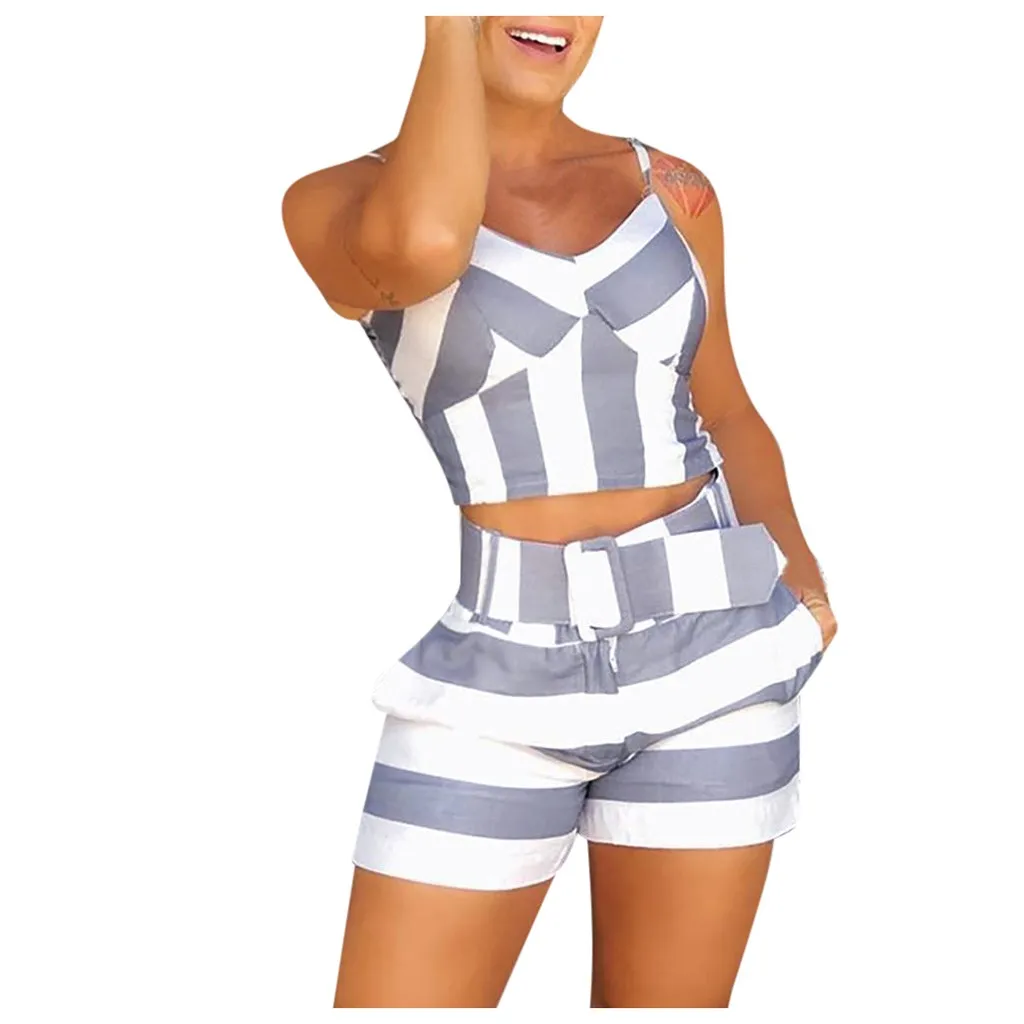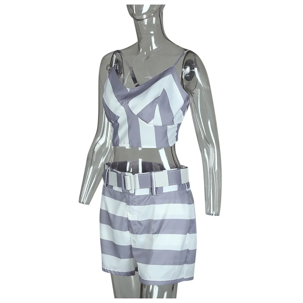 Женская плотная полосатая рубашка с лямкой на шее, короткие штаны, повседневные слинги, комплект из двух предметов