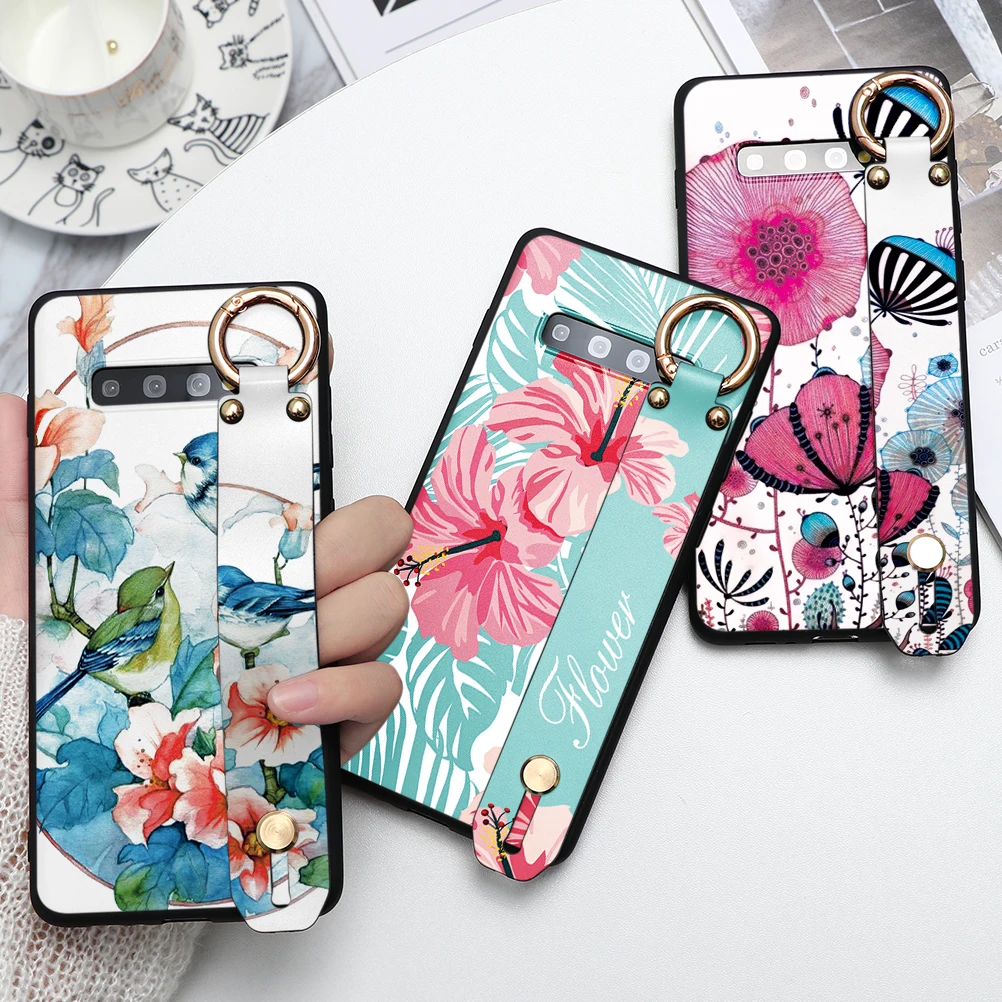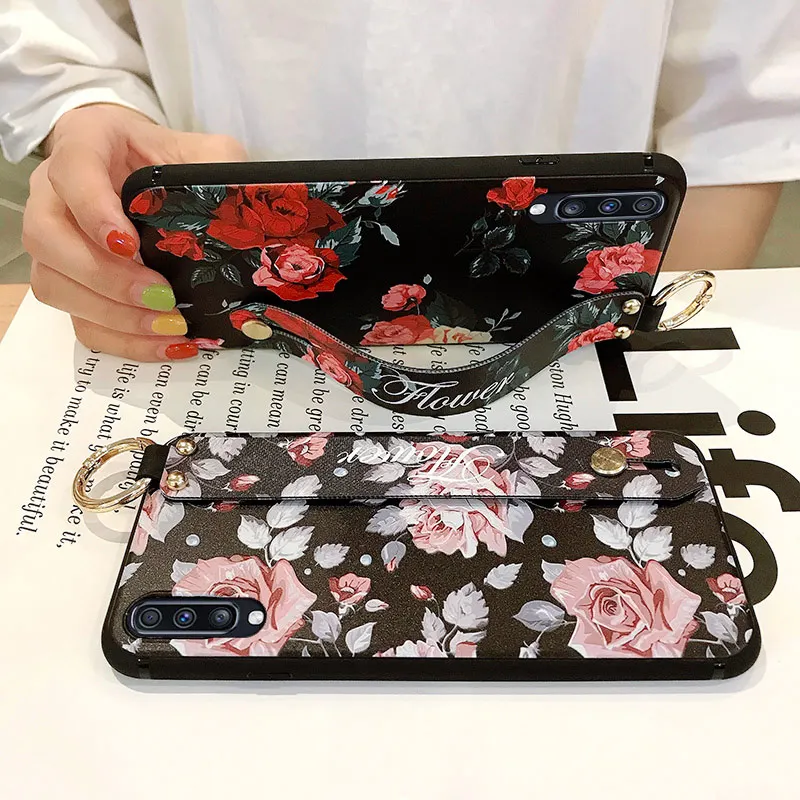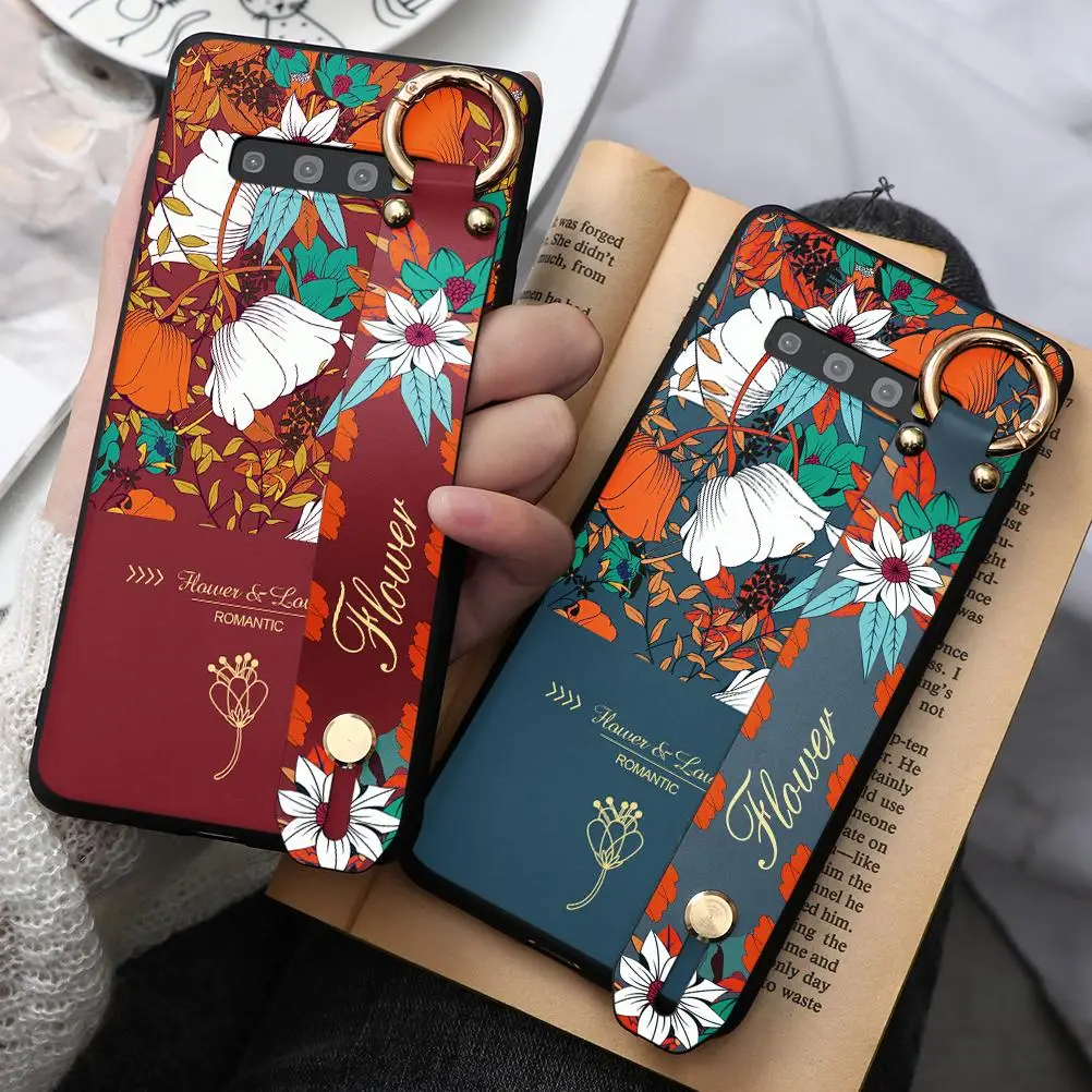 Цветочный чехол-подставка на запястье для Samsung Galaxy Note 10 9 8 5 4 A40 A50 A70 A51 A71 A7 A9 A6 A8 Plus 2018 M10 M30 силиконовый чехол
