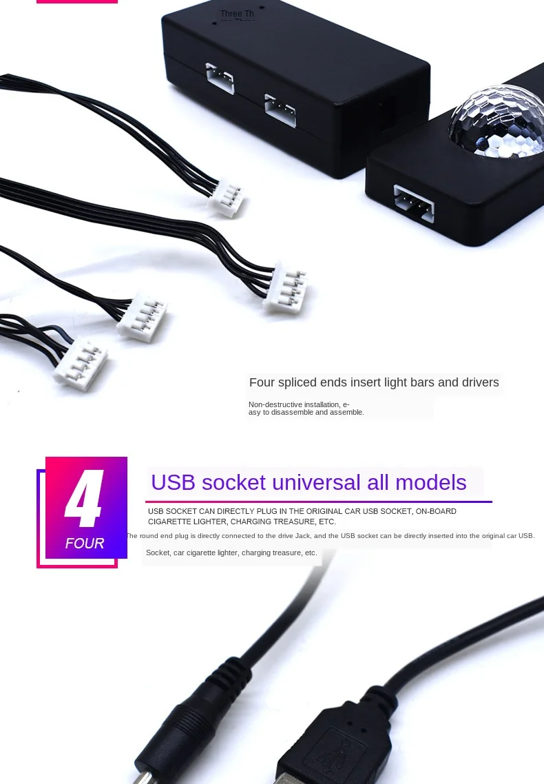Напряжение: 5 В с USB-разъемом, используется для автомобилей, грузовиков и любых других музыкальных мест.Мощность: 3,2 Вт.Цвета: разноцветныеОсобенности (Контроллер вспышки):