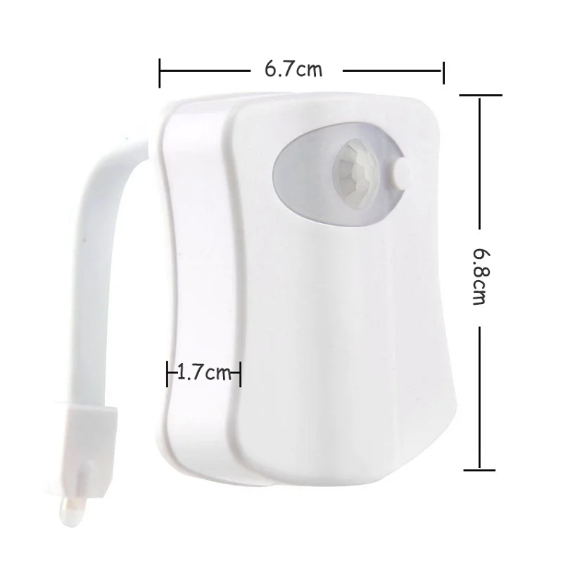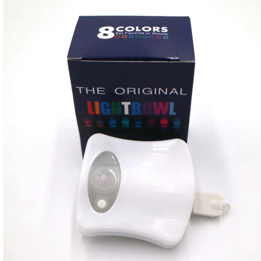Он беспроводной и простой в установке. Излучает подходящий мягкий светильник в ночное время. Туалетная лампа имеет Индуктивный прибор, атоматически включается, когда люди в диапазоне датчика и автоматически выключается для экономии энергии. Вам не нужно гулять в поисках ванной, когда вы спите в середине ночи, безопаснее и не боитесь упасть или ударить в туалет. Унитазы включают визуальную систему позиционирования для ночников. Что лучше, так это то, что лампы туалета также могут быть расположены с различными цветами светильник (8 цветов).