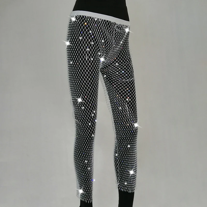 US Womens Fishnet Diamond Shiny Elastic Beach Cover Pants Party Club Trousers