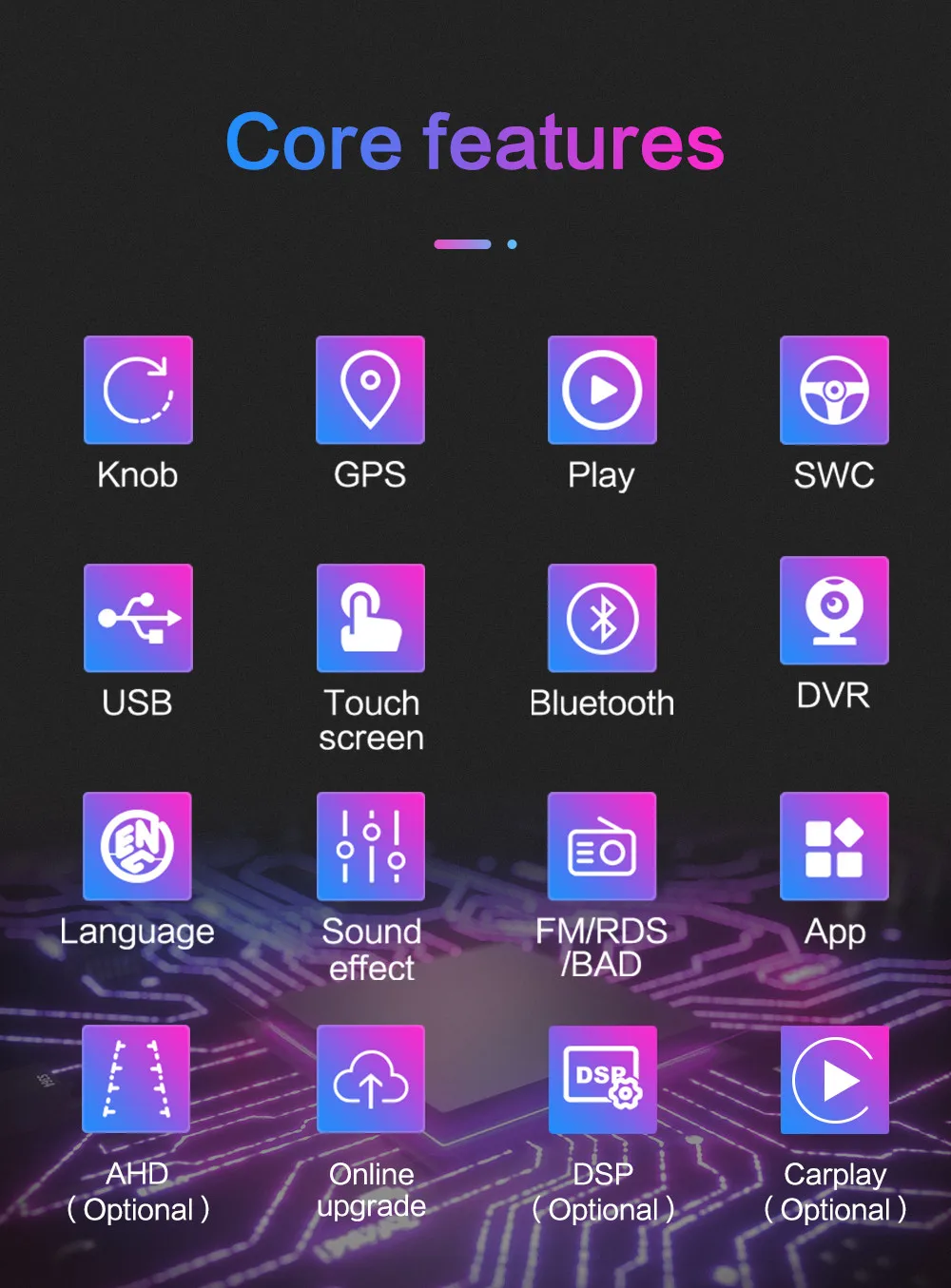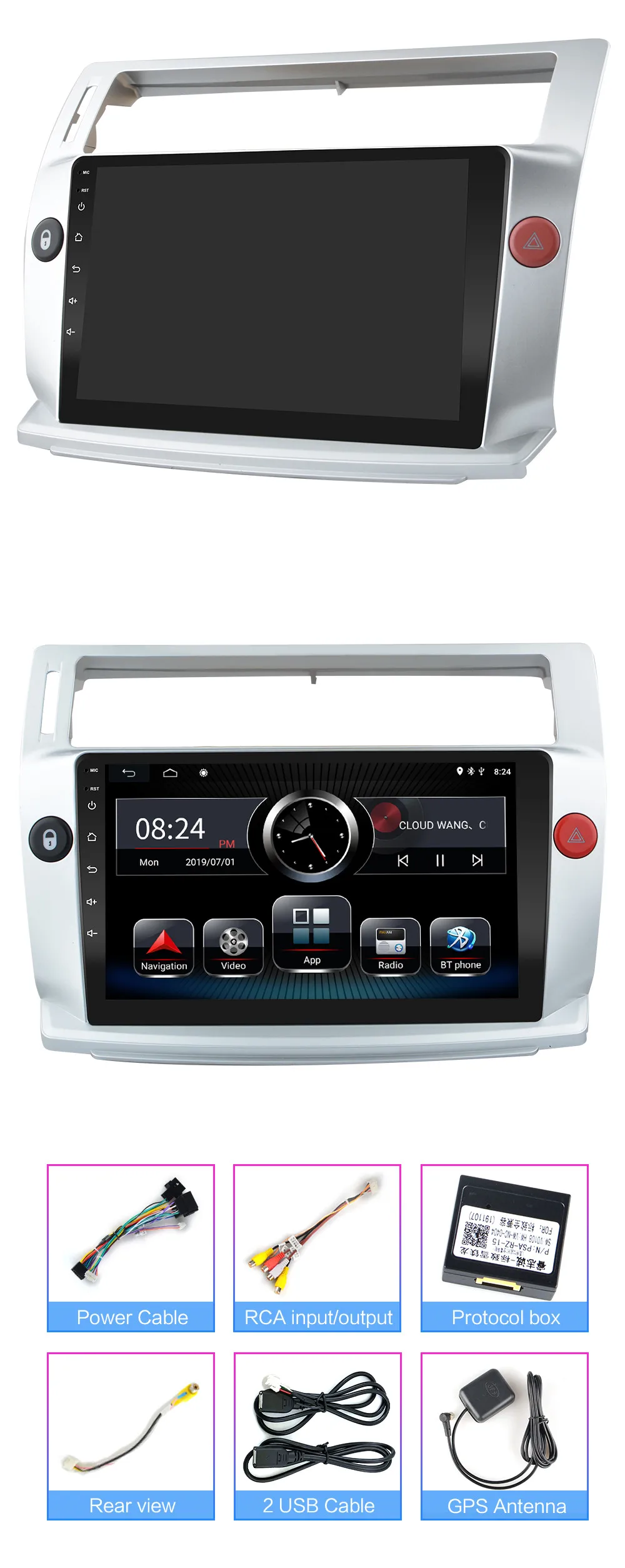 . ОС: Операционная система Android RAM + ROM: 2G + 16G 2G + 32G 2G + 64G Поскольку система занимает внутреннюю память, операционная система занимает около 4-6 ГБ памяти. Бесплатная установка карта ЦП: четырехъядерный Поддержка изменения логотипа, пароль заводского набора: 8888, изменение логотипа Разъем питания: подключи и работай Встроенный GPS -Поддержка 2D HD и 3D карт Разрешение: 2.5D HD 1024*600 пикселей емкостный экран --- Поддержка внешнего мобильного u-диска и жесткого диска FAT32 (без ограничения емкости) --- Интернет развлечения, встроенный WiFi модуль. --- Поддержка HD 1080p видеоигр, поддержка зеркального соединения и Airplay. --- Радио: FM / AM-Radio с 30 предустановленными станциями Функция двойной зоны (пользователь может слушать музыку или радио в режиме gps-навигации) --- Встроенный Bluetooth handsfree и телефонная книга, поддержка A2DP, воспроизведение музыки напрямую по телефону. (Вы должны согласиться с авторизацией телефона и синхронизировать контактную информацию в настройках телефона) Совместимость с управлением рулевого колеса Электронная и механическая Противоударная система --- Высокомощный стерео аудио выход, поддерживает 4 динамика ---- Поддержка AHD 1080P вход камеры заднего вида Обратите внимание: эта модель не имеет функции DVD / CD, но поддерживает жесткий диск мобильного USB / U диска.