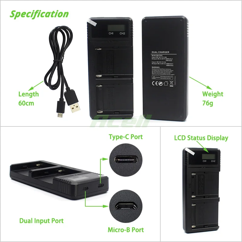 1 х быстрое Двухканальное зарядное устройство с ЖК-дисплеем