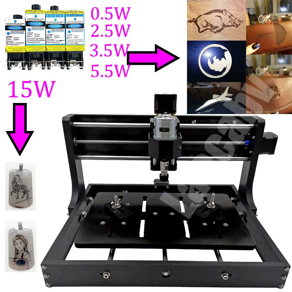 Программное обеспечение управления: GRBL, BenBox, GRBL Control ler Материал: алюминий + бакелит Рабочая зона: 300*200*40 мм Размер оправы: 400*330*240 мм Шпинделя: 775 мотор шпинделя 24V: 10000r/мин Шаговый двигатель: 1.3A 0.25N.m Источник питания: 24 В 5A Поддерживаемая система: Windows XP/ Win 7/ Win 8/ Win10 Home Лазер (опции): 500 МВт/2500 мвт/5500 МВт/15000 МВт 15000 мВт может гравировать металл, такой как 201304 нержавеющая сталь.
