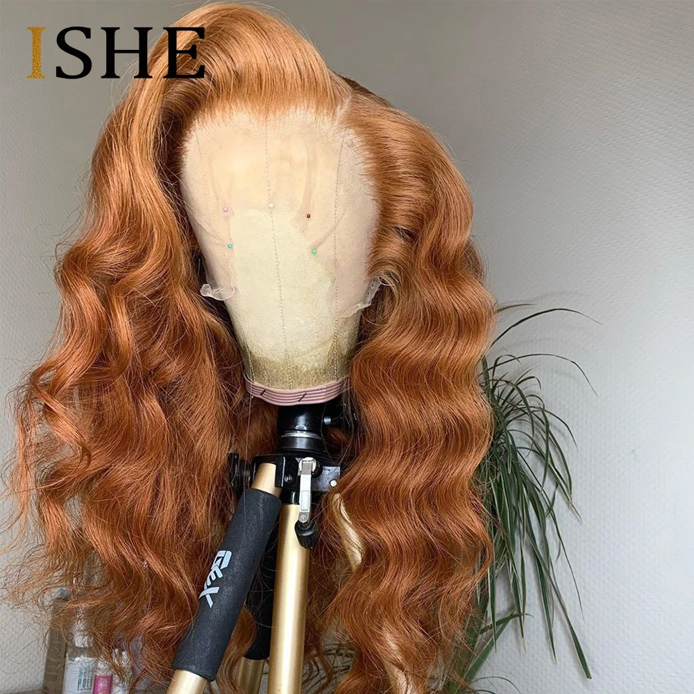 Парики из человеческих волос оранжевого цвета 13X6, парики из человеческих волос с фронтальной шнуровкой, волнистые парики для черных женщин, предварительно выщипанные кружевные парики Remy для волос 150