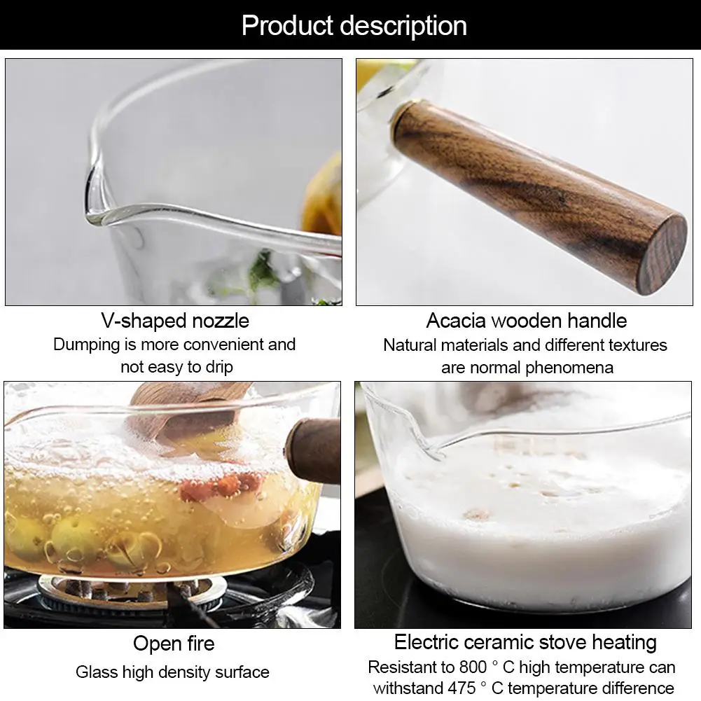 1. Гладкая и удобная: широкая ручка гладкая и удобная для удержания.Обработка стеклянной трубки обеспечивает гладкую поверхность. Не легко трескаться, износостойкий, устойчивый к коррозии и легко моется. Используйте теплую воду для предварительного нагрева, а затем варите на медленном огне, потому что боросиликатное стекло является термостойким, и его необходимо использовать d осторожно при приготовлении пищи на открытом пламени.