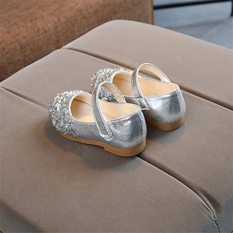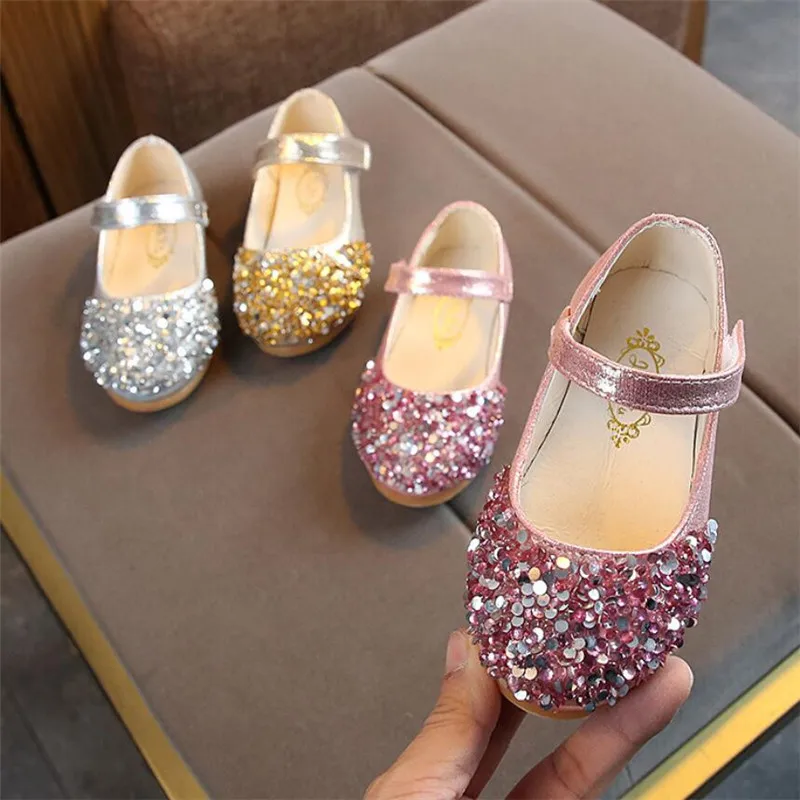 Новинка 2020 года; Детская кожаная обувь; Танцевальная обувь принцессы с блестками и кристаллами для маленьких девочек; Дышащая нескользящая обувь для студентов
