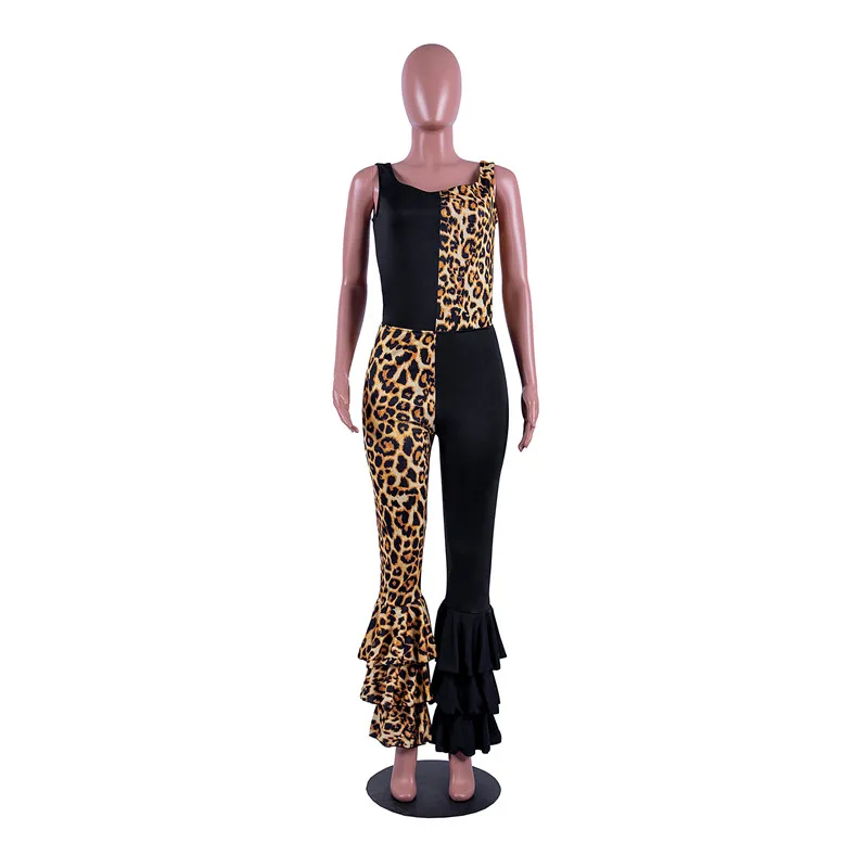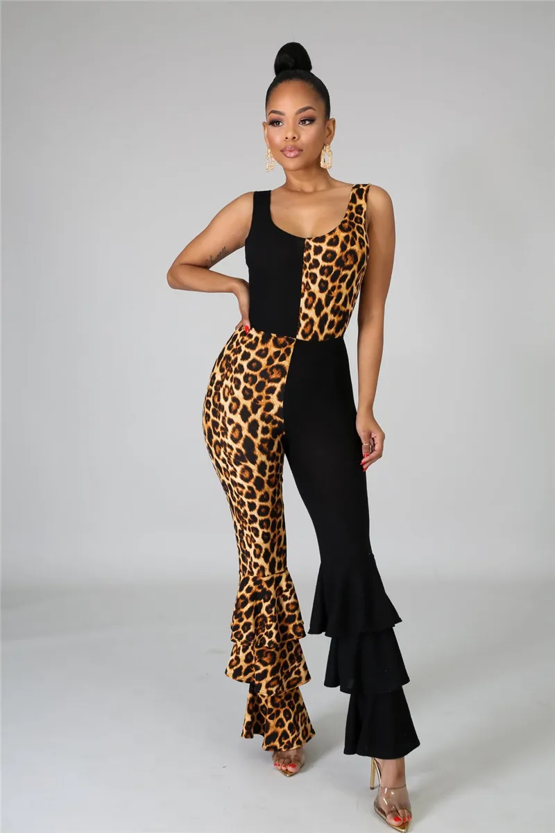 Adogirl Леопардовый принт пэтчворк женский сексуальный комбинезон с расклешенными штанинами ниспадающие гофрированные штаны для ног комбинезон без рукавов