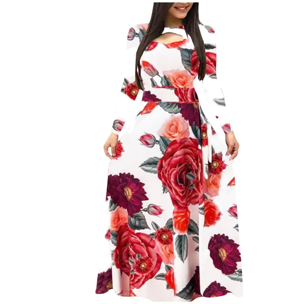 Сексуальное женское платье макси в стиле бохо с длинным рукавом и цветочным принтом в стиле бохо, вечерние платья подружек невесты, повседневное длинное платье в черный горошекИнформация о продукте: