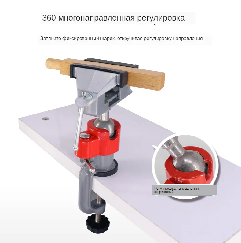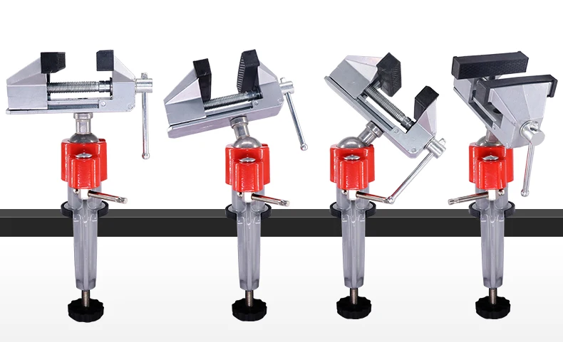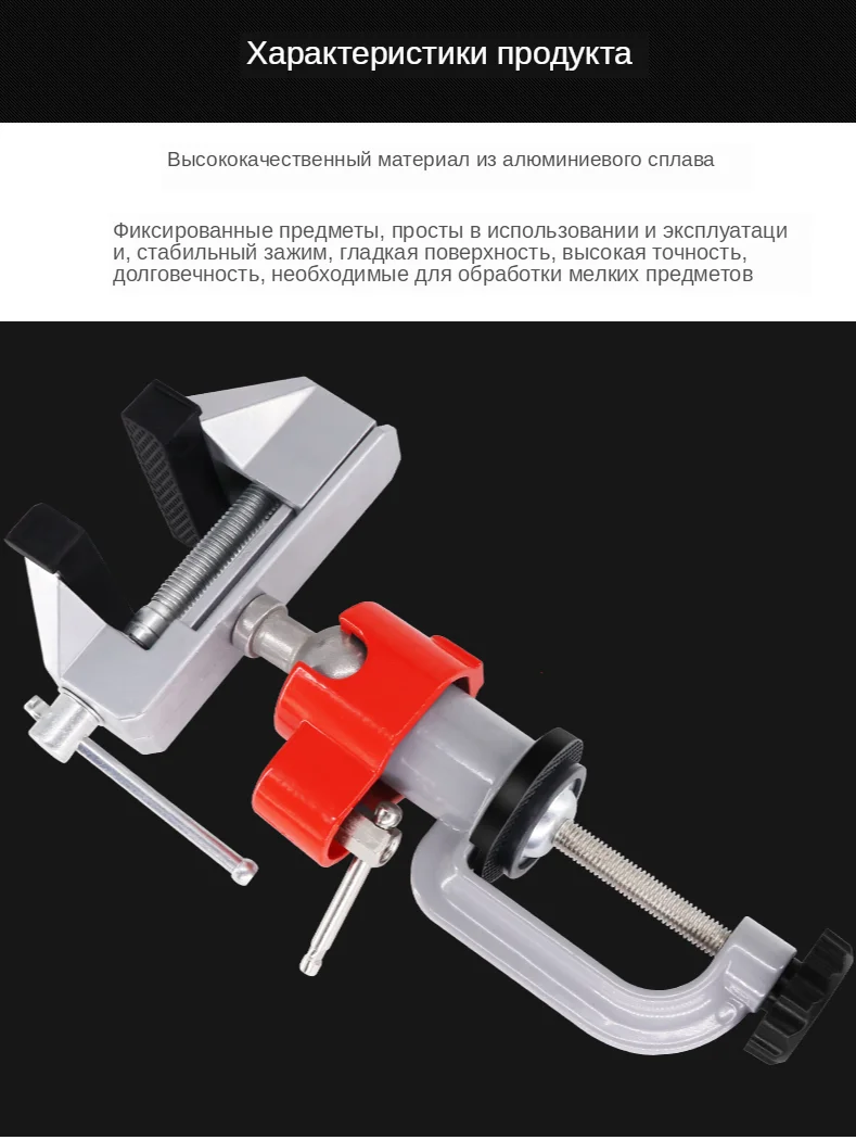 Вращающийся на 360 градусов, изделие удобно использовать дома или на фабрике. Новинка и высокое качество! Материал: алюминиевый сплав Диапазон зажима: Диапазон зажима объекта 0-60 мм, диапазон зажима стола 0-60 мм. Область применения; Подходит для зажима обычных форм, различных неправильных форм, небольших заготовок, обработки и обслуживания заготовок.