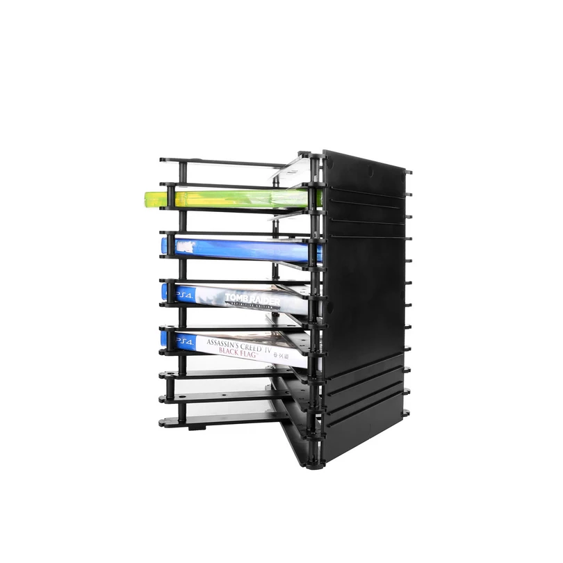 Этот товар является идеальным игровым периферийным устройством для серии Play, ForXBOX. Он универсален и может вместить почти все игры, диски/DVD/CD/Blue-Ray и т. Д. Он может хранить 11 компакт-дисков/дисков, легко сверяться с содержанием CDs, собрать компакт-диски и вынуть их с подставки. Также может работать как маленькая книжная полка или вещи больших размеров для хранения.