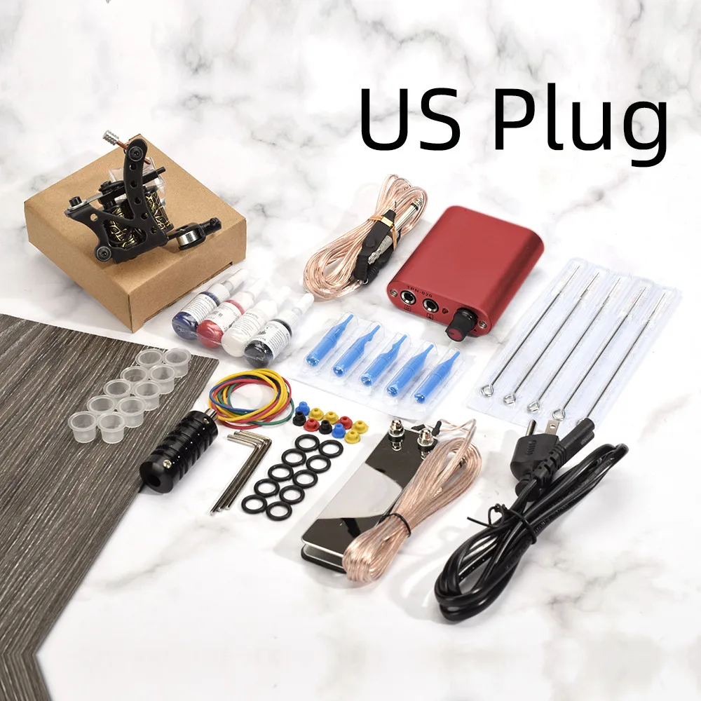1 х топ тату машина для подкладки и затенения (8 деформационных катушек) 1 x Высококачественная мини-система питания, ножной переключатель и зажим 4 x бутылка чернил татуировки 5 x Высокое качество предварительно сделанные стерильные иглы татуировки 1 x Высококачественная ручка для тату-машины 5 одноразовых наконечников (3RT) 10 xTattoo чернильные чашки (м) 10 x втулка держит иглу устойчивой 10 x резиновых полос Avoide машина 10 x уплотнительное кольцо уверенная пружина гладкая 3 x набор инструментов регулировки для машины