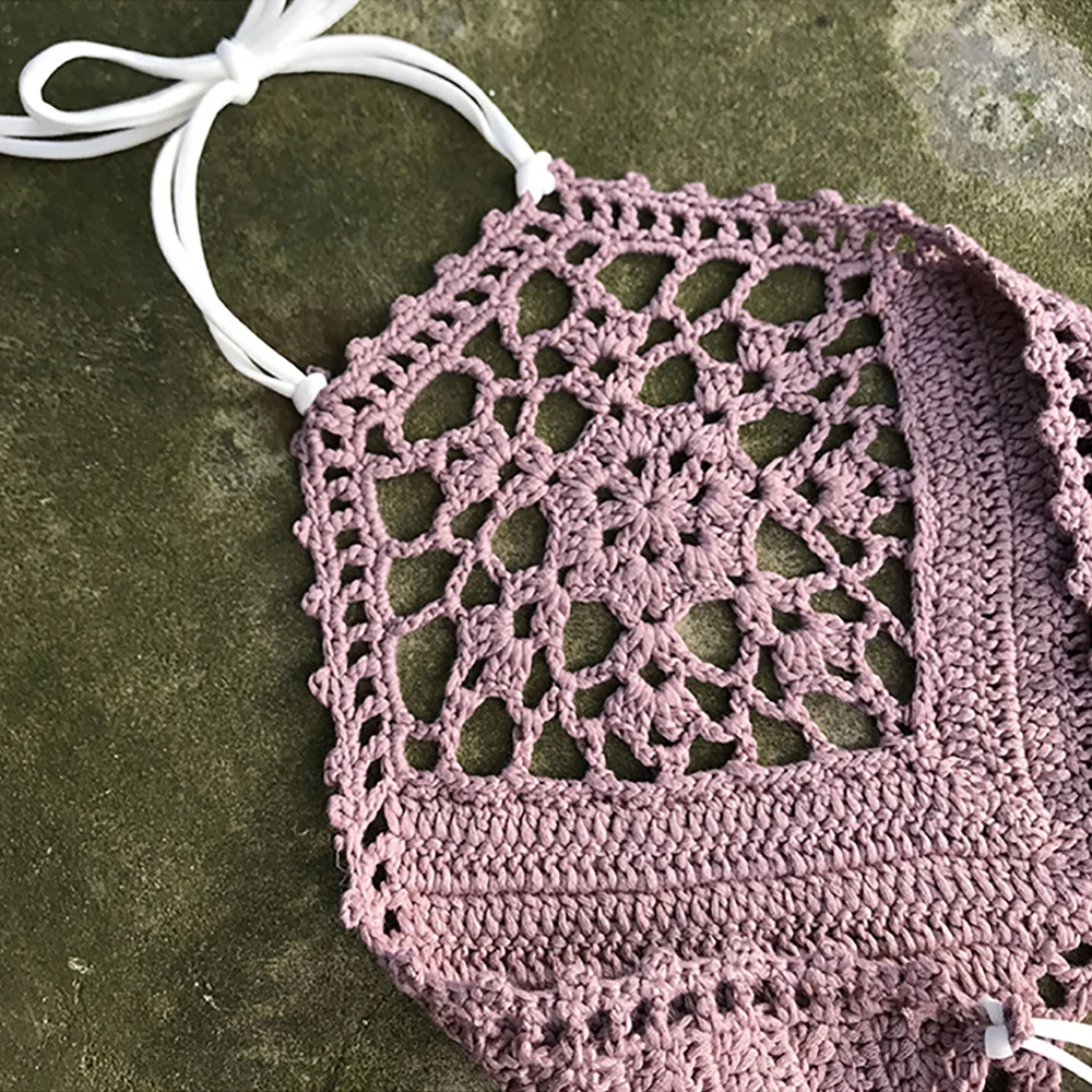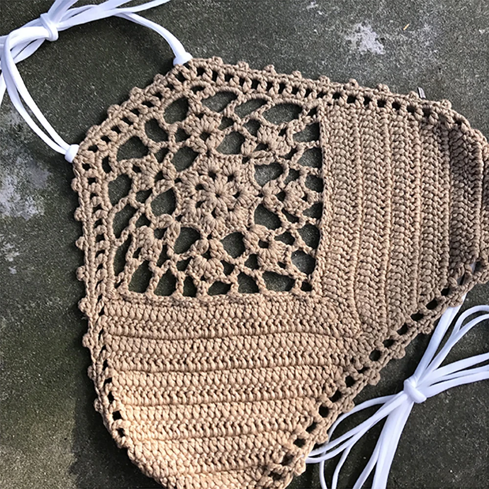 Hook Knit Bikini Wrapped Chest Bra Sexy Wild Split Swimsuit Top