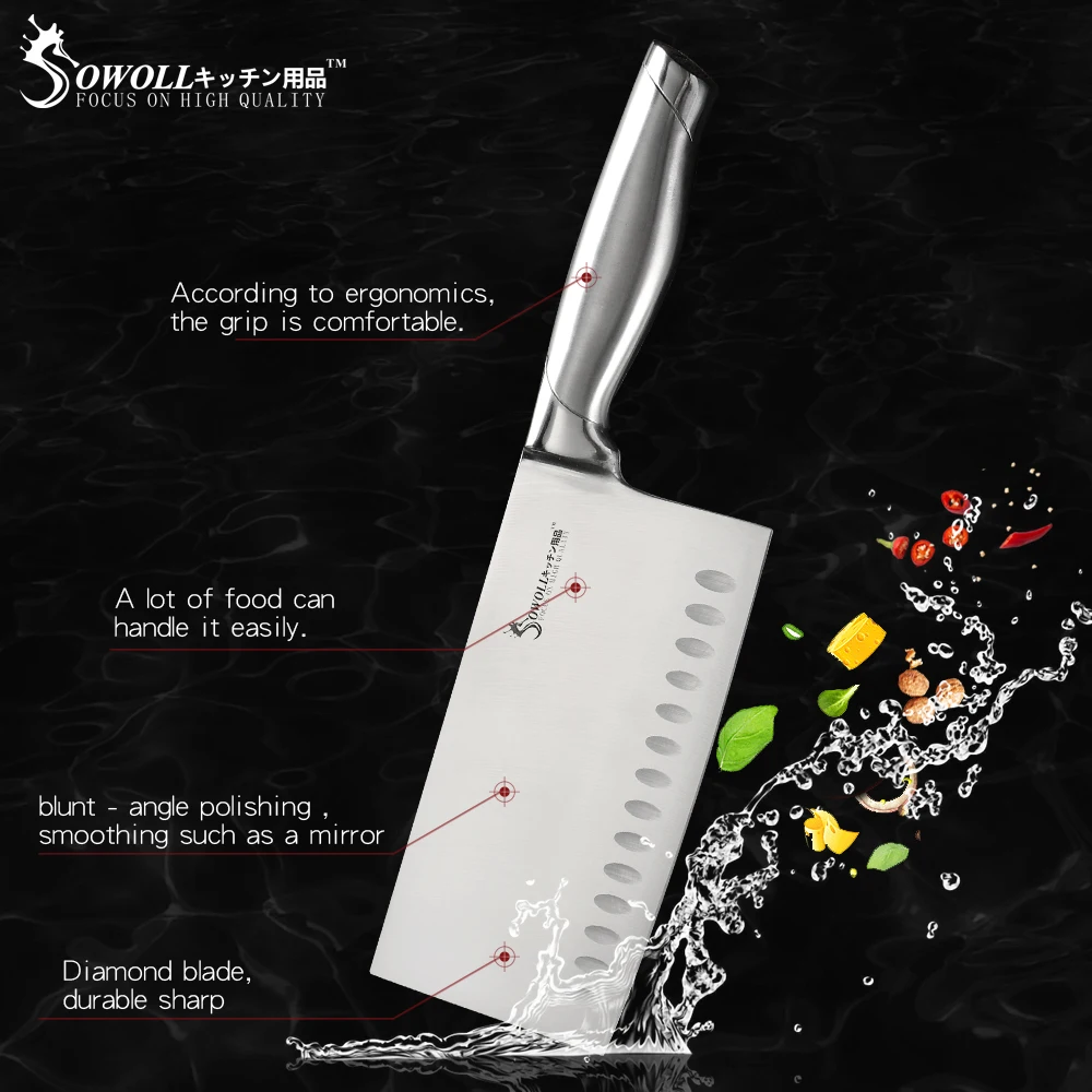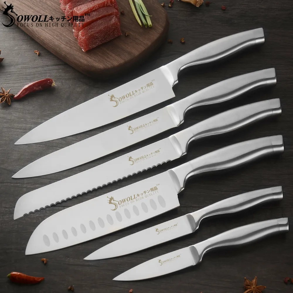 Ножи Sowoll из нержавеющей стали, набор из 9 предметов, нож с лезвием Tang, сумка, ножницы, 7 дюймов, нож для резки, походные инструменты для кемпинга