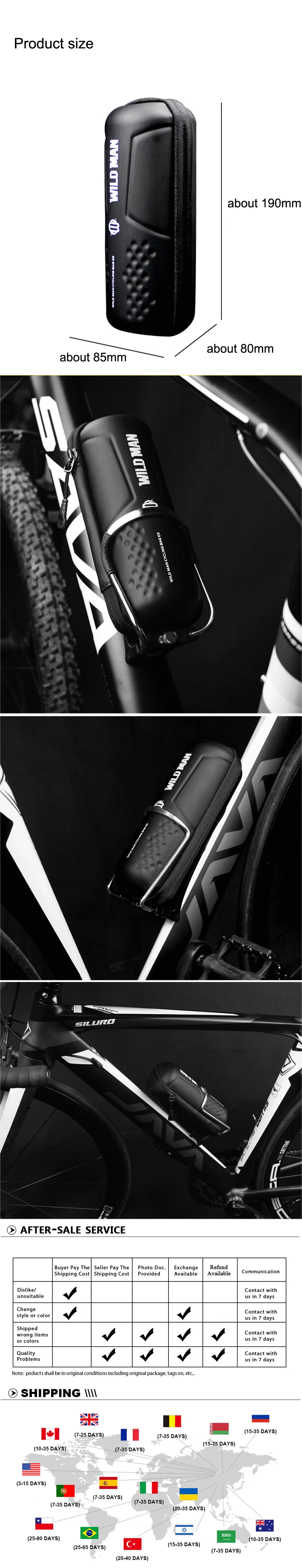 Название продукта: сумка для велосипедных инструментов Материал: из искусственной кожи + EVC Размер: 19 см * 8,5 см * 8 см Цвет: черный Советы: только сумка для хранения инструментов (не включая набор инструментов) Содержимое упаковки: 1 сумка для велосипедных инструментов Примечание светильник вая съемка и различные дисплеи могут привести к тому, что цвет товара на изображении немного отличается от реального. Допустимая погрешность измерения составляет +/- 1-3 см.