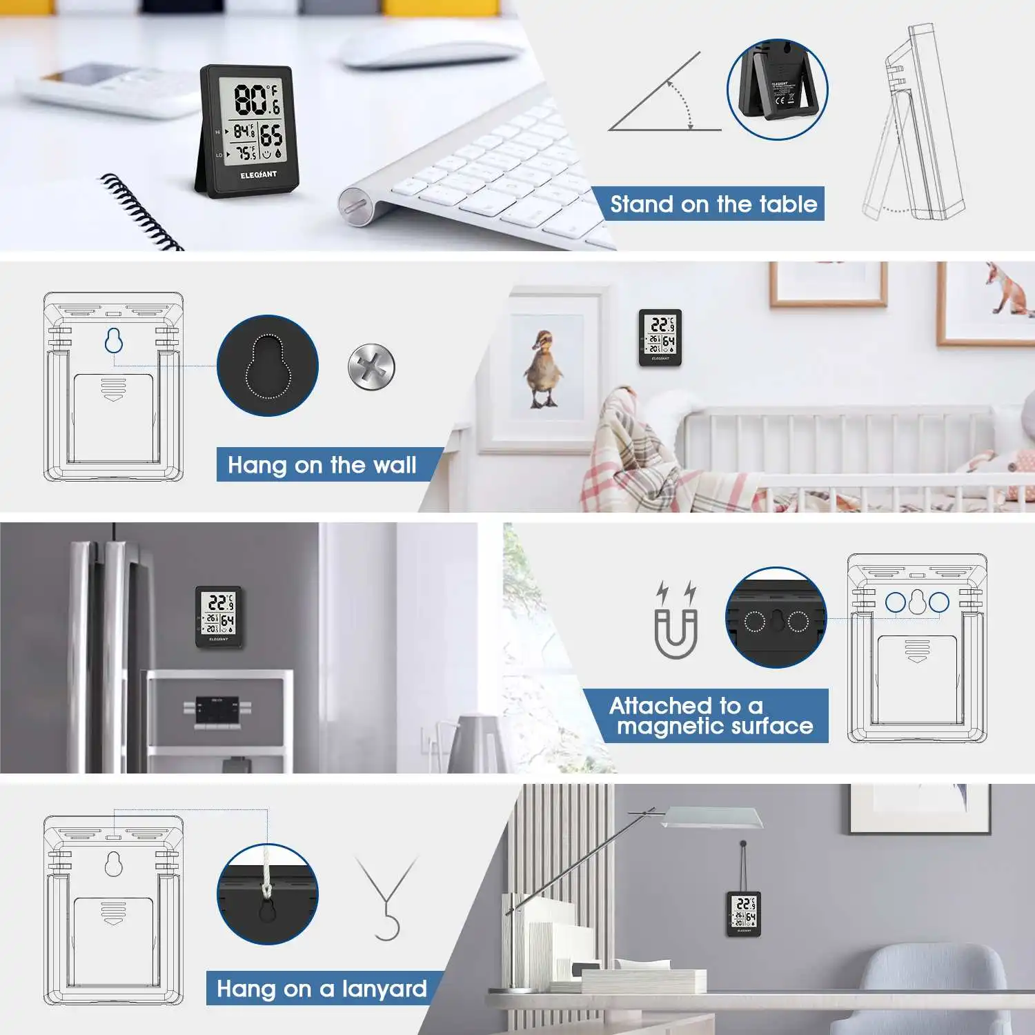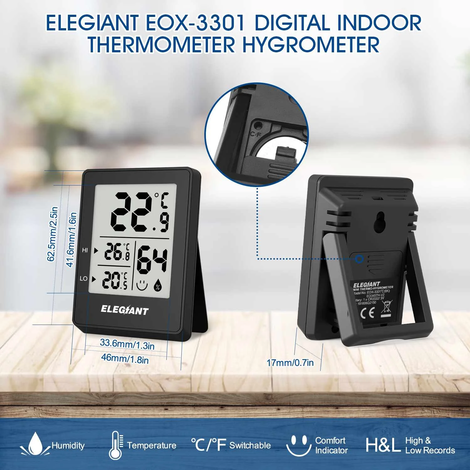 ELEGIANT EOX-3301 Home Confort Megnet цифровой Комнатный гигрометр термометр датчик влажности и температуры