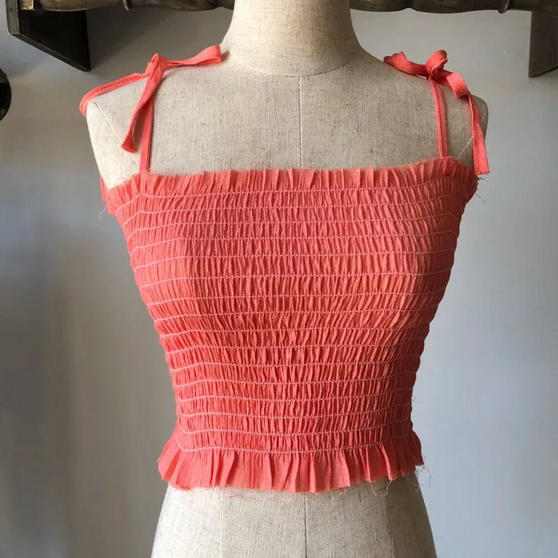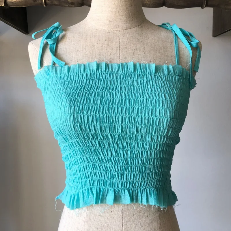 Однотонная шифоновая пляжная одежда с галстуком-бабочкой, топ-труба для женщин, модный плиссированный укороченный топ с рюшами, сексуальный топ-бюстье, футболки, женские топы на бретелях