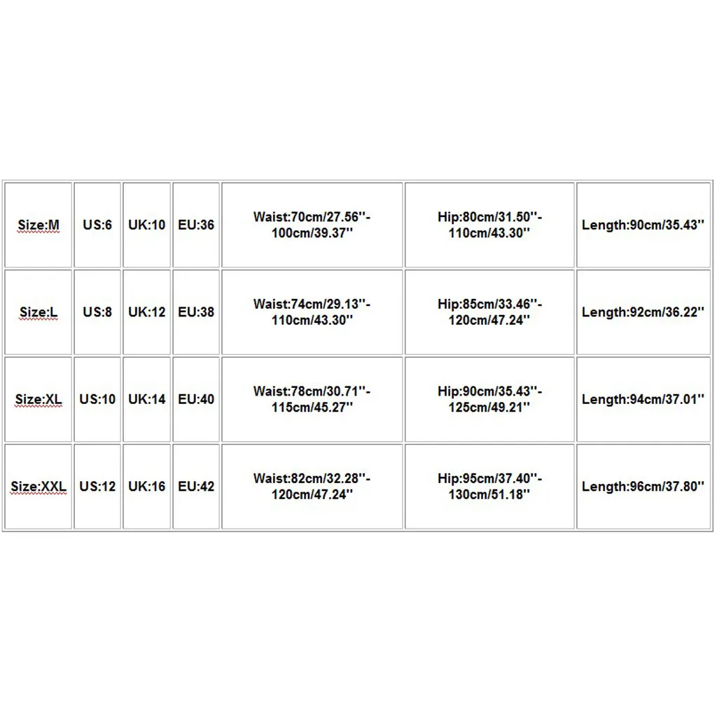 Размеры Свяжитесь с нами Великобритания ЕС Обхват талии Обхват бедер Длина М 6 10 36 70 см/27,56 ''-100 см/39,37'' 80 см/31,50 ''-110 см/43,30'' 90 см/35,43'' L 8 12 38 74 см/29,13 ''-110 см/43,30'' 85 см/33,46 ''-120 см/47,24'' 92 см/36,22'' XL 10 14 40 78 см/30,71 ''-115 см/45,27'' 90 см/35,43 ''-125 см/49,21'' 94 см/37,01'' XXL 12 16 42 82 см/32,28 ''-120 см/47,24'' 95 см/37,40 ''-130 см/51,18'' 96 см/37,80''