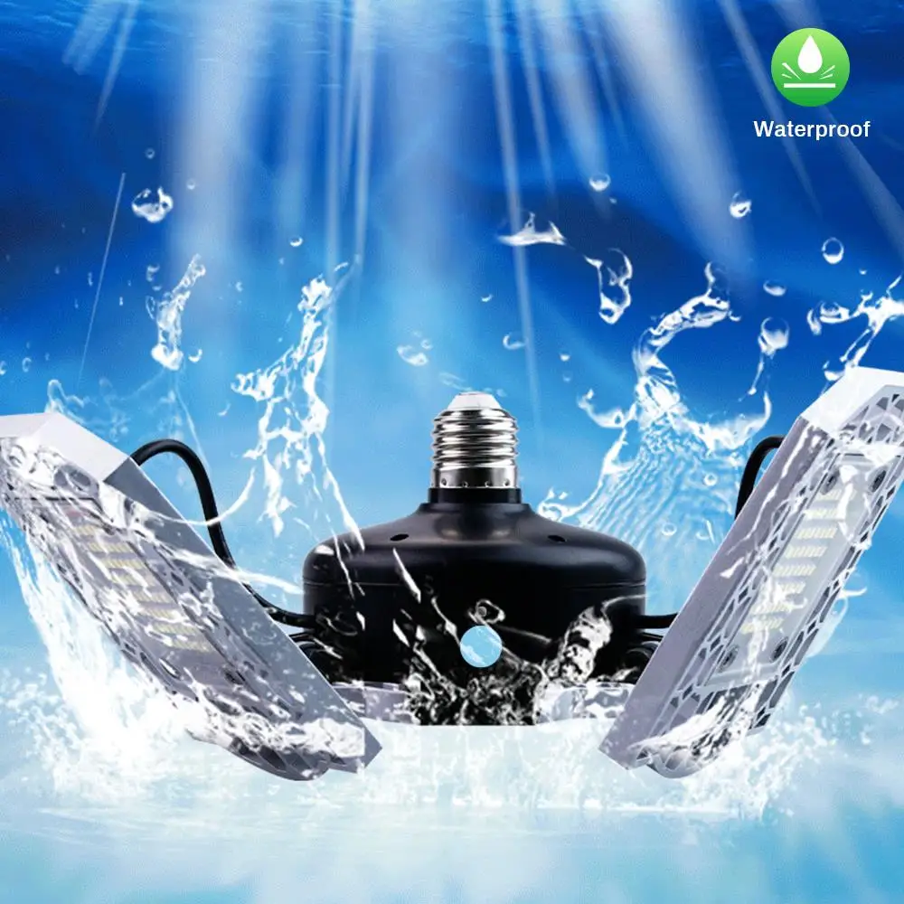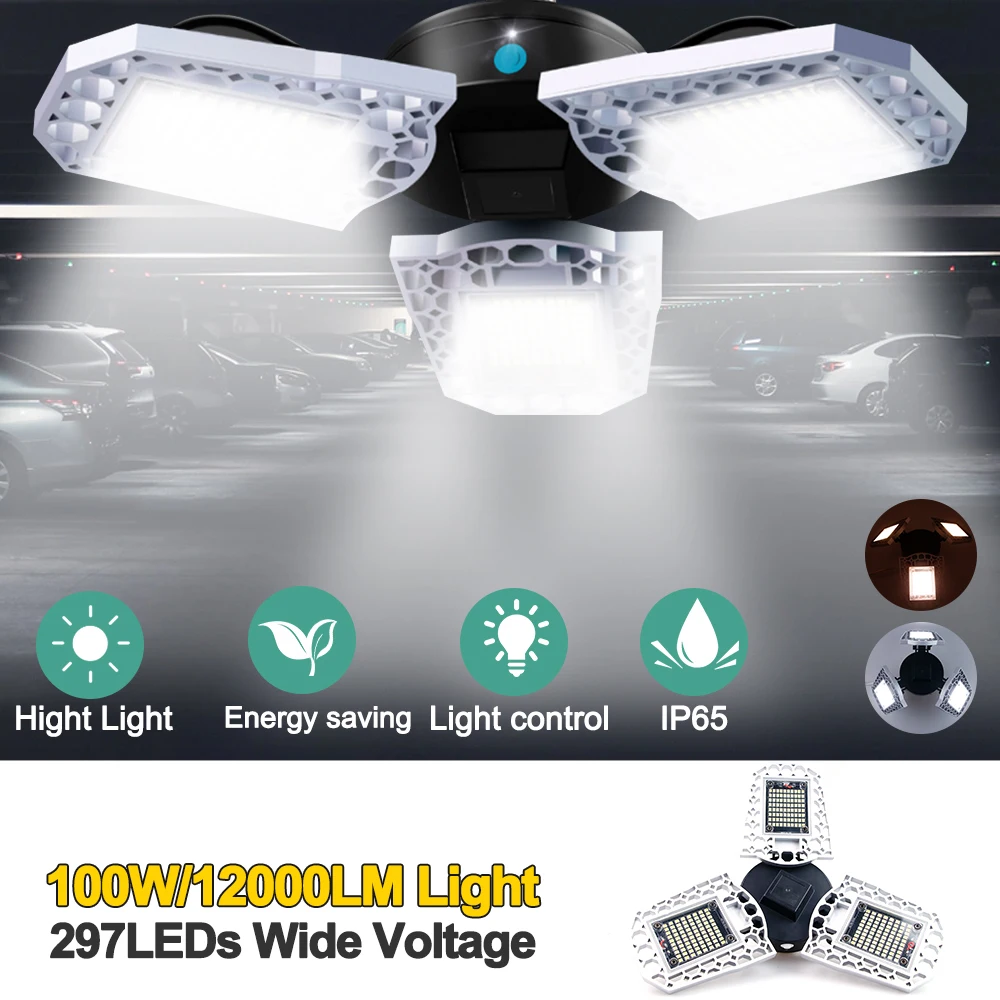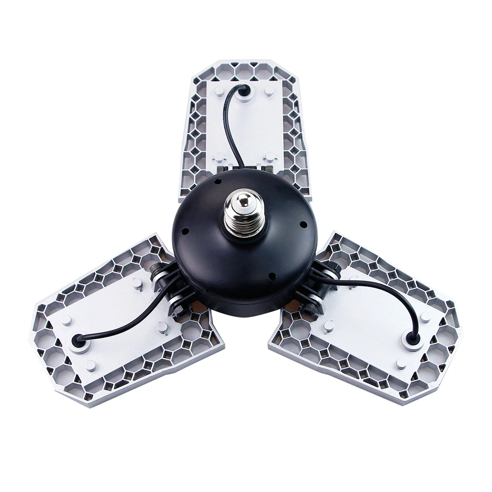 90 ° Регулируемый Дизайн: с 3 Регулируемый алюминиевый светодиодный панели, каждый светодиодный панель гаража светильник может быть отрегулировано от 0 ° до 90 ° в соответствии с вашими требованиями, и вы можете самостоятельно оформить сандалии под разными углами. Охват светильник может достигать 360 градусов.
