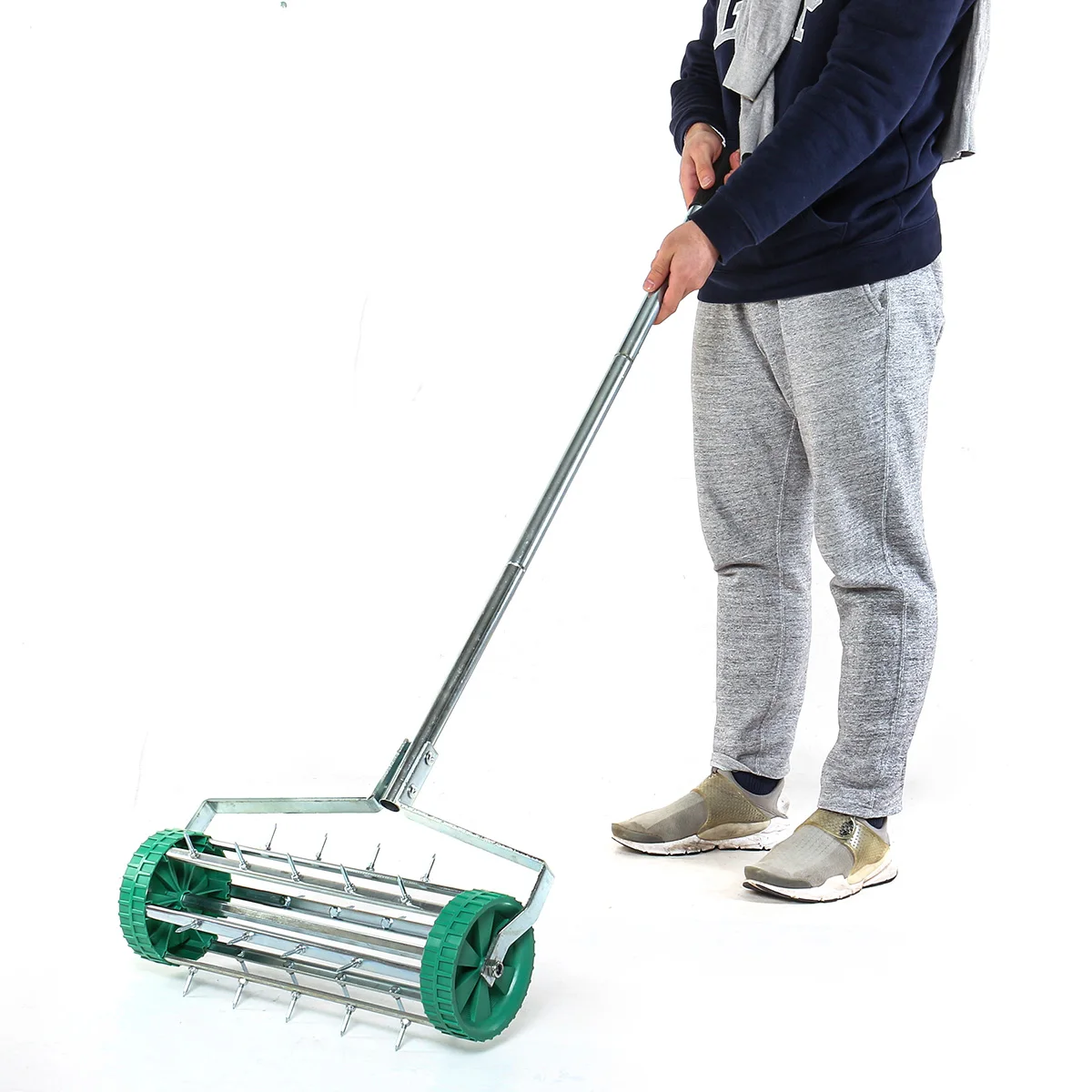 ● Аэраторы для прокатки газонов позволяют воздуху, воде и питательным веществам достигать низовых корней, помогая вам поддерживать газон и легко сажать зеленые лужайки