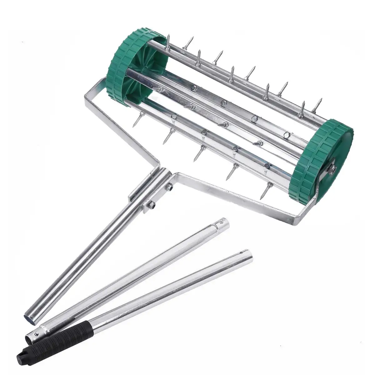 Газонный аэратор для ногтей имеет 27 оцинкованных гвоздей, каждая металлическая пластина на ролике имеет 4-5 гвоздей и более 184 отверстий для аэрации на квадратный метр. 3 см шипы способствуют глубокому росту корней и вентиляции.
